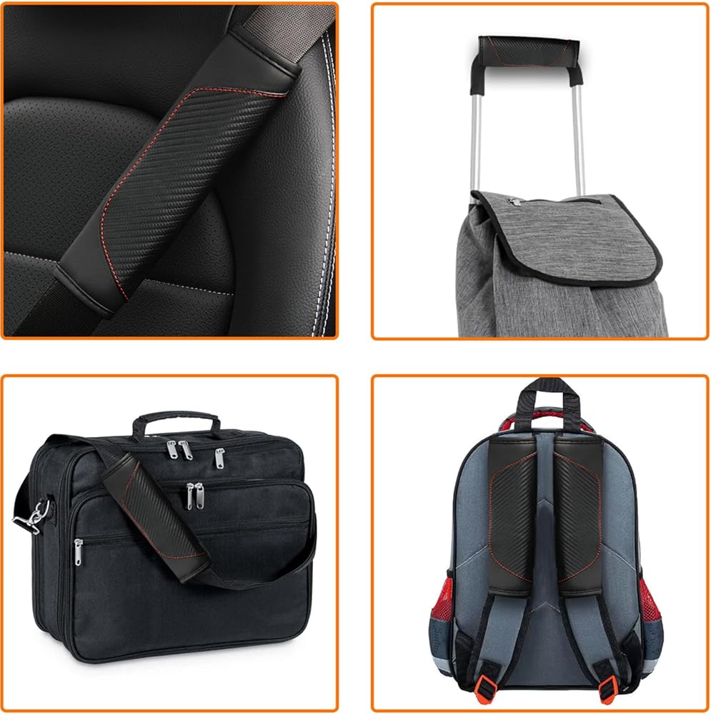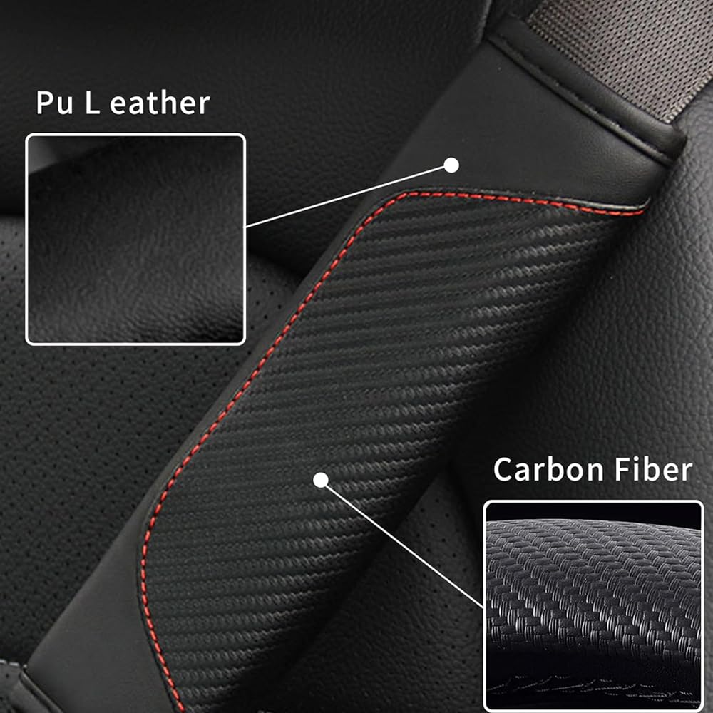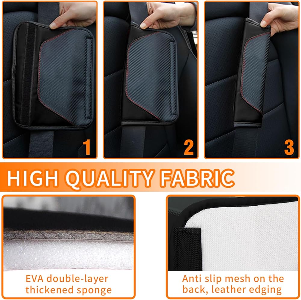 Quick Installation: This carbon fiber leather car seat belt shoulder protector is easy to install, sticky and fixed, easy to remove and install. It has a long velcro at the bottom, when you get the seat belt, lightly tear the plastic velcro, wrap it to the original car seat belt, stick the velcro, adjust the height, the installation is complete.