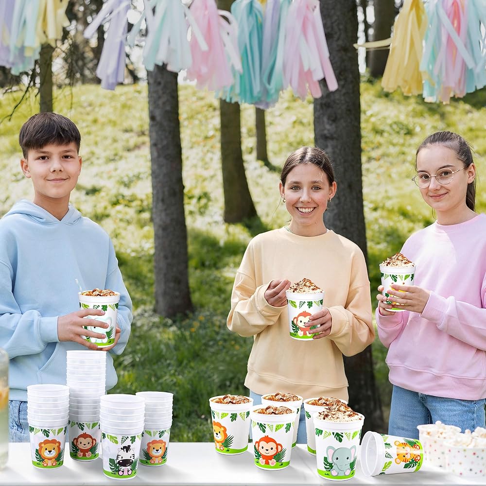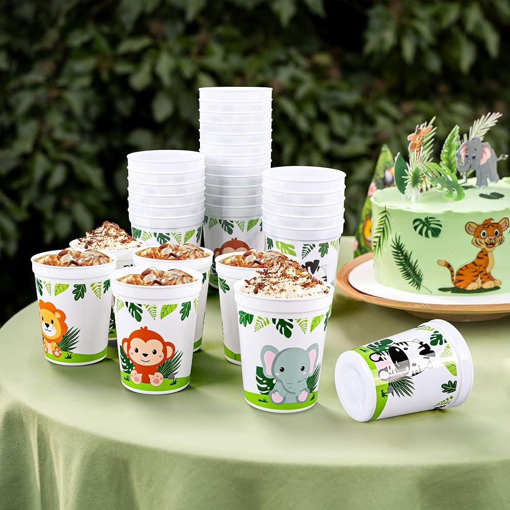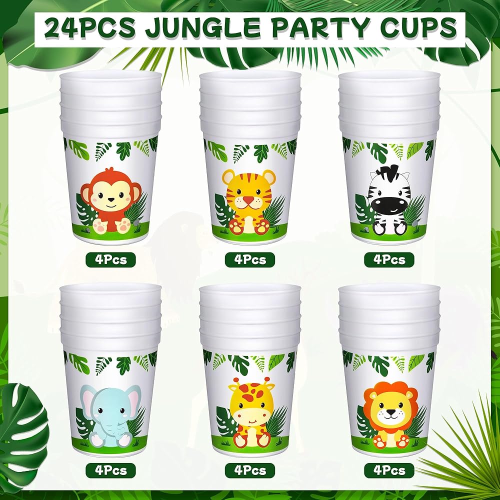 Jungle Party Cups: You will receive 24 beautiful jungle-themed cups. There are a total of six different designs, with four cups for each design. These jungle cups are perfect party supplies for both family and children's parties!