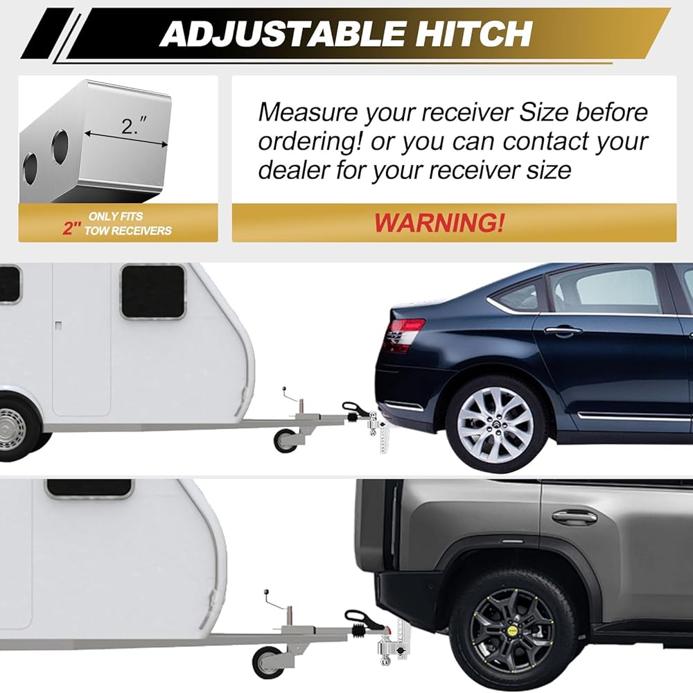 【Universal Compatibility】: Our adjustable trailer hitch fits 2 Inch receiver. Designed to work with a wide range of vehicles and trailers, our hitch ensures that you can tow anything, anywhere. Whether it's a boat, a camper, or equipment, we've got you covered.