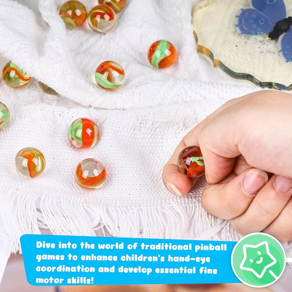 High Quality - Our vibrant glass marbles are crafted from premium-grade glass, ensuring they are robust with a smooth and visually appealing surface. These marbles for kids are built to be durable and strong, ready to withstand extended use and provide long-lasting enjoyment.