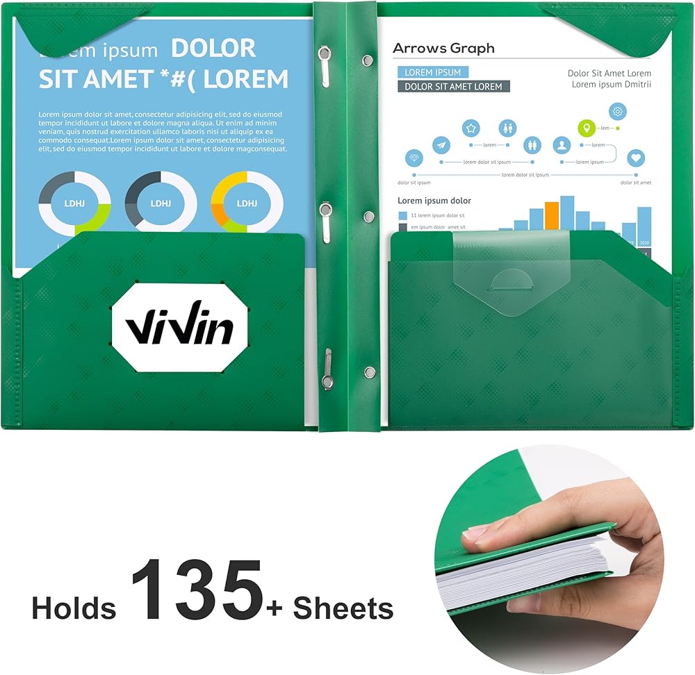 ViVin's water-resistant, tear-resistant plastic folders with pockets and prongs are the ultimate solution for all your school, office, and home organization needs. Get organized with confidence!