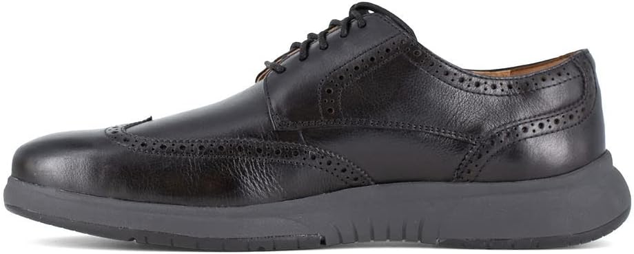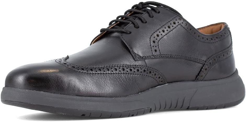If you have a bit of a timeless style but also like new trends, look no further than the Florsheim Flair Work. A combination of dressy classic leather patterns and modern technology-filled outsoles. The reward for your best of both worlds – out-of-the box and long- lasting comfort with flexsole technology for out-of-the-box comfort, Comfortech insoles, and a SupaCush midsole for multiple layers of comfort. Footwear Type: Wingtip Work Oxford Toe Type: Steel Upper Material: Pigskin Leather Color: Black Lining: Pigskin Leather Insole: Fully-cushioned Removable Comfortech Footbed with High Rebound Foam Outsole: Durable and Cushioned EVA Outsole with Rubber Traction Pads on Heel and Toe Special Features: SupaCush Midsole, Flexsole, Static Dissipative (SD35) Features: ASTM F2413, Steel Toe, SD35, SR - Fully-cushioned removable Comfortech footbed with high rebound foam for long-term wearability - SupaCush Midsole - softer midsole compound for additional comfort and flexibility - Durable and cushioned EVA outsole with rubber traction pods on heel and toe - Flexsole technology for out of the box comfort - Steel toe protects against hazards, meeting or exceeding ASTM F2413 standards