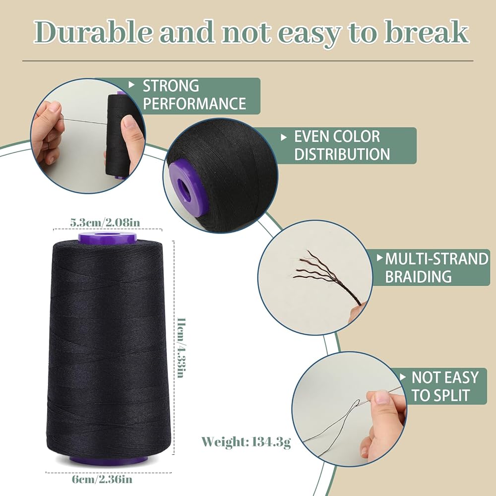Sewing Thread Material: The hair thread is made of high-quality polyester (black, beige, dark brown, khaki, brown, dark coffee). Sewing thread is strong, durable, and not easy to wear and tear, and is often used for wigs, hair weaving, and hair extensions.