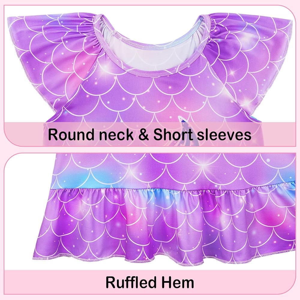 Detail Design - The round neck and short sleeves design make this toddler nightgown easy to put on and take off. The knee-length ensures full range of motion without restricting the child's actions. The ruffled hem allows for more flexibility and movement, perfect design for kids pajamas.