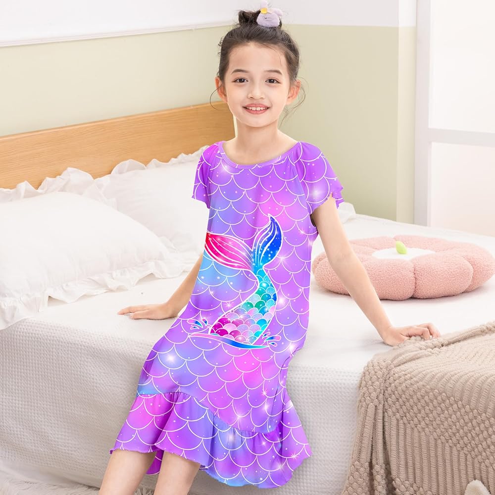 Girls' Nightgown - Featuring a mermaid pattern design with animated colors that do not easily fade. Available in multiple colors, combining beauty and comfort to keep kids feeling cozy and relaxed all day and night. This princess nightgown ensures a great night's sleep for your little girls.