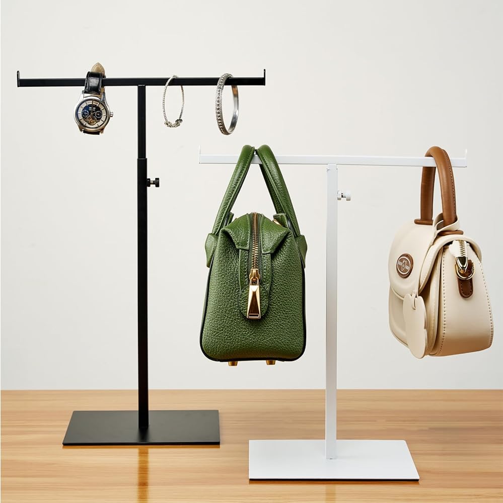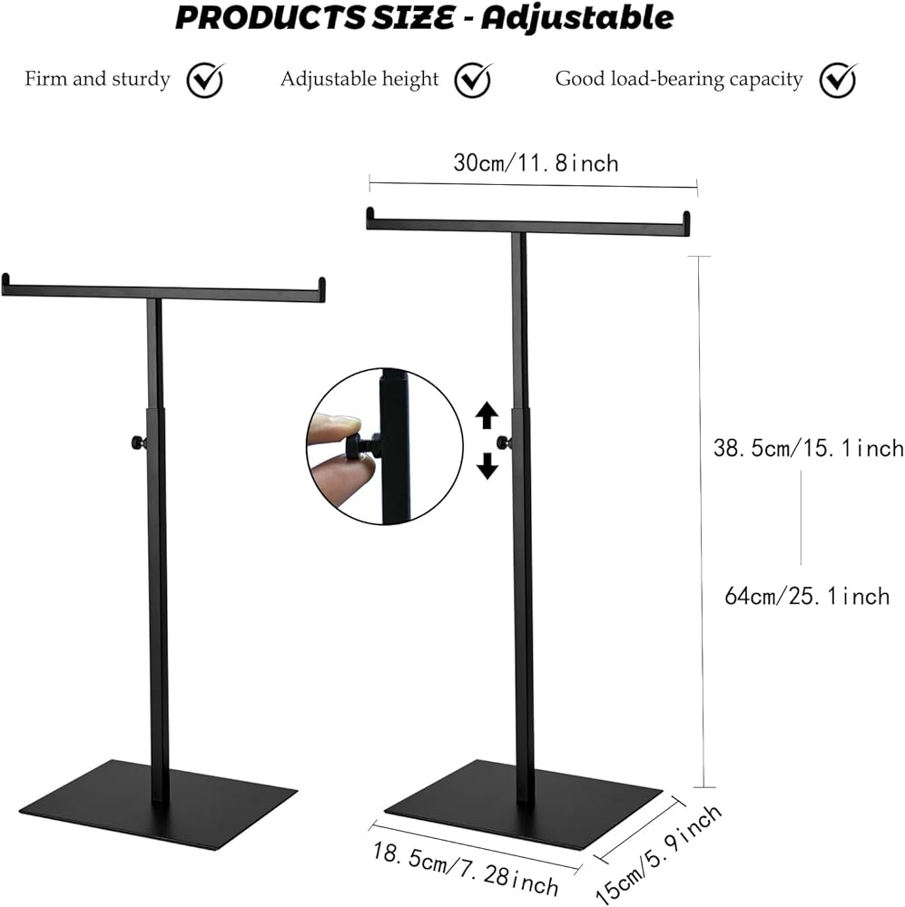 Height Adjustment Jewelry Towers - Ranging from 13.9 inches to 25 inches, fit different display needs. T bar is 11.8" long and the base is 7.28"×5.9". Whether it's showcasing handbags, jewelry, or scarves, you can easily adjust the height accordingly.