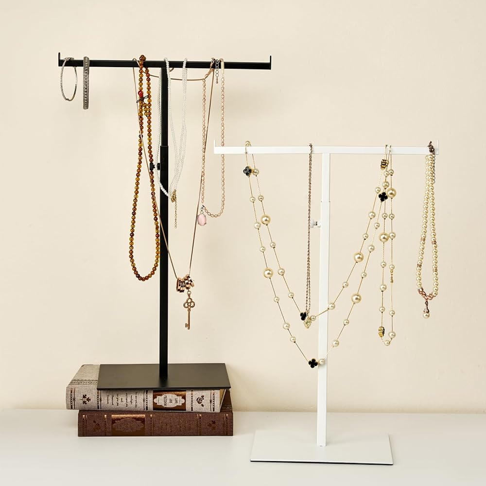 Multipurpose T-bar Jewelry Display Stand - This jewellery display stand is perfect for bracelet and necklace holders. It allows you to hang more than 10 items on a 12-inch stand to prevent them from getting tangled together. It can also be used to organise men's chains and watches.