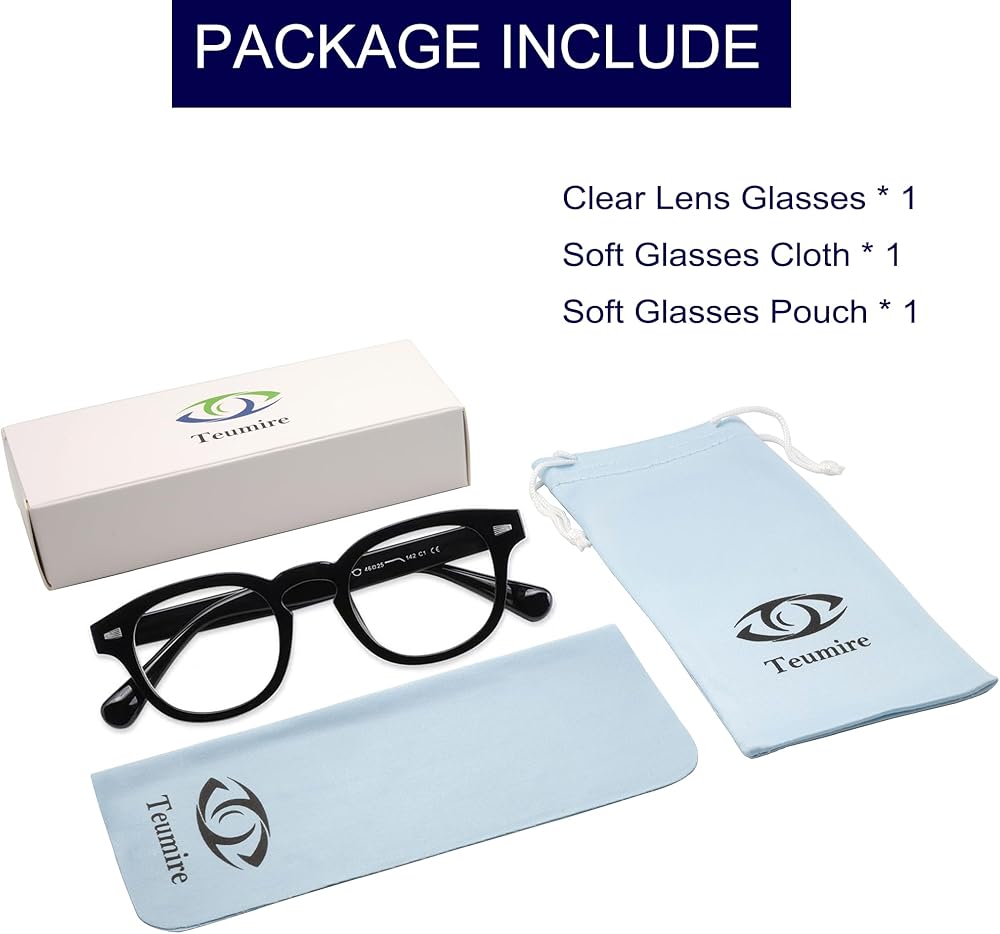 NOTES - Our package includes:Clear Lens Glasses * 1,Soft Glasses Cloth * 1,Soft Glasses Pouch * 1,Mini Screwdriver * 1;If there are any questions, please contact us to solve the problem until you are satisfied.Your satisfaction and trust are the goal of TEUMIRE.