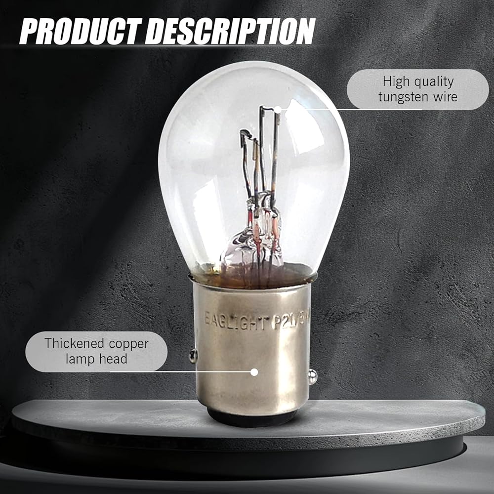 Product Details: The package includes 10 1157 halogen brake lights, with an overall size of 2.06" x 1.04", and the bulb specification is P21/5W S25 BAY15D, which is suitable for halogen lamp replacement for most cars. It needs to be replaced in pairs to ensure a consistent lighting effect.