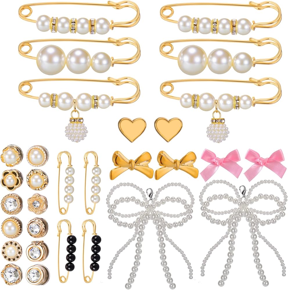 Charms for Shoe Socks 30pcs Pearl Bow Brooch Pins Shoe Charms for Sneakers Shoelace Junk Socks Charms Kit Bulk for Womens Shoes DIY Decorations
