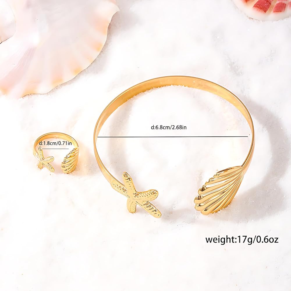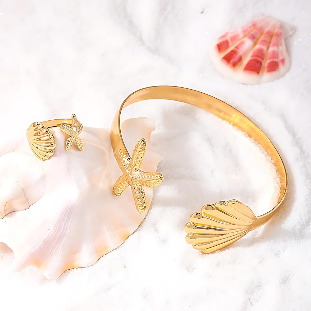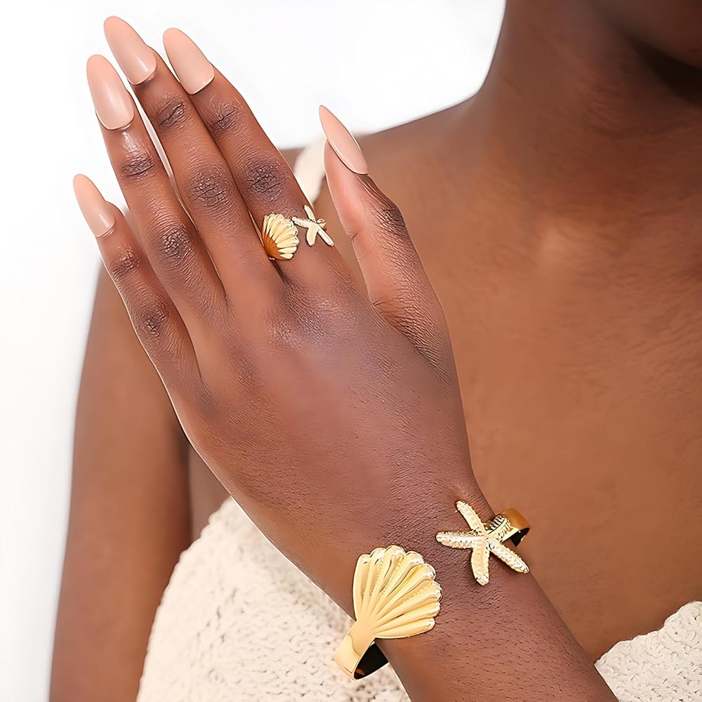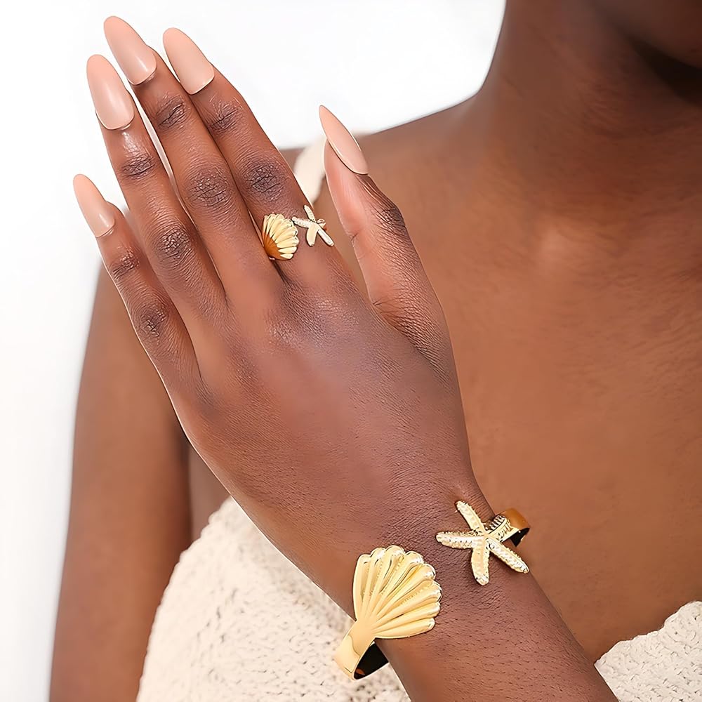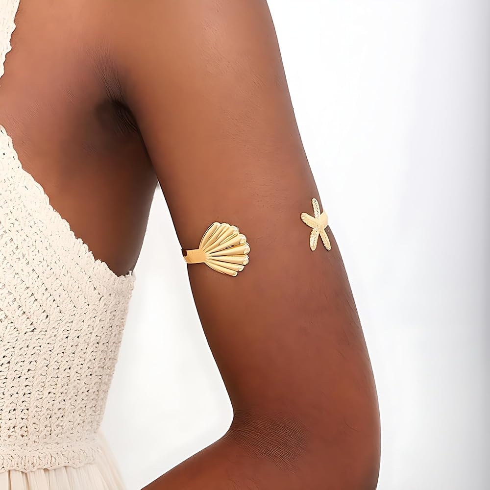 Quality Material: Made from 18k gold-plated stainless steel, this starfish shell Arm Cuff ring features a simple yet striking design that adds charm to any outfit and commands attention wherever you go. It combines elegance with durability, promising to stand the test of time. Additionally, making it suitable for individuals with sensitive skin