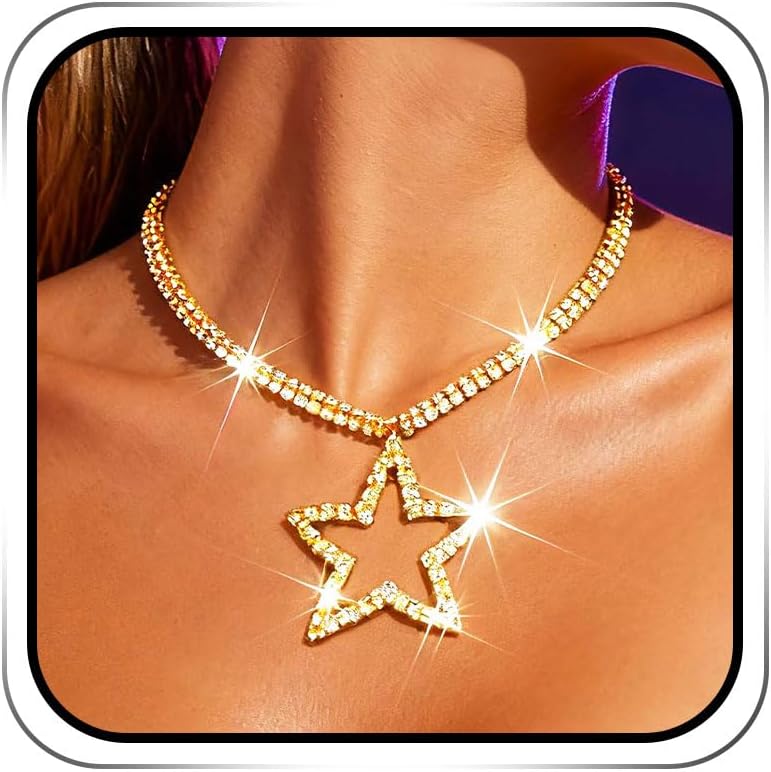 Glitter star pendant necklace length 34.5CM/13.6IN with 24.5CM/9.6IN extension chain,which is suitable for most women, adjust the length according to your needs.