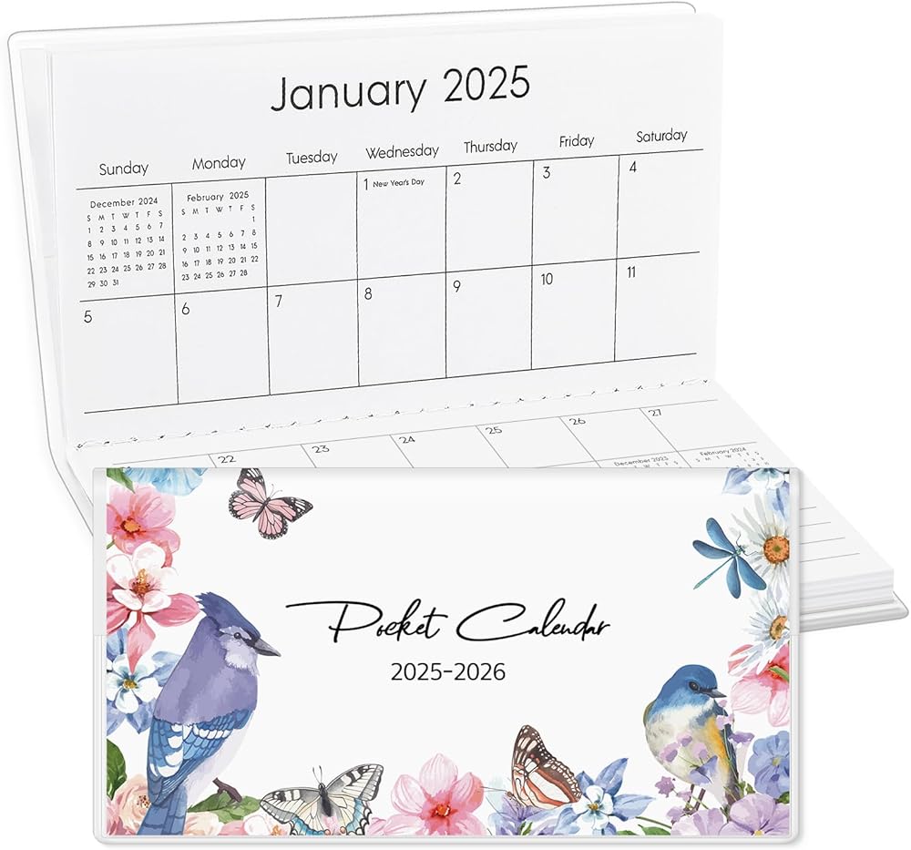 Pocket Calendar 2025-2026, Small Pocket Planner 2026 for Purse, Monthly Planner with Pvc Cover, Small Size (3.5" x 6"), From January 2025 - December 2026 - Bird