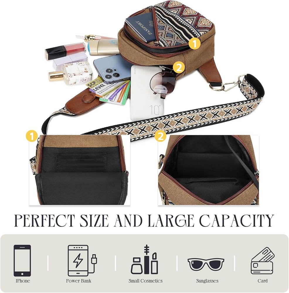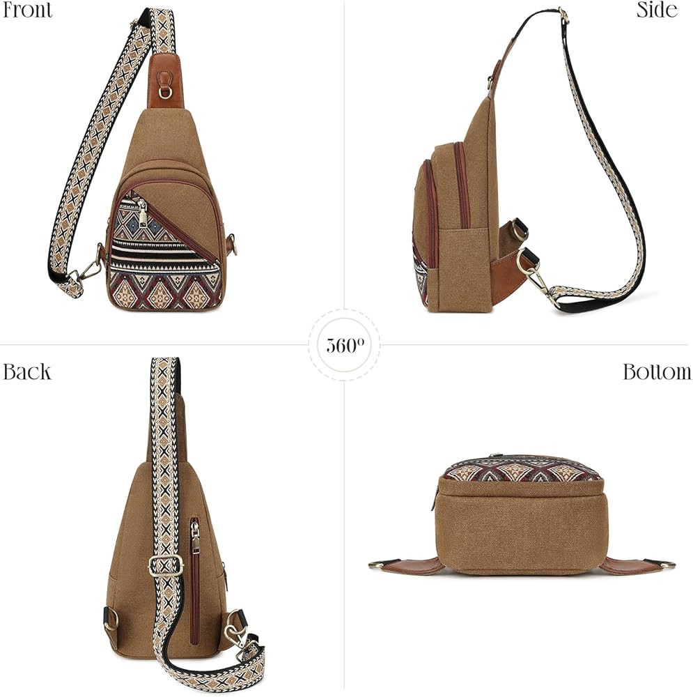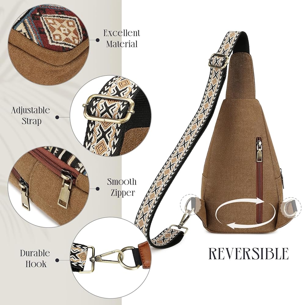 Stylish and Practical: The Bohemian embroidered pattern and ethnic style make this canvas sling bag a standout accessory for any outfit. Unique and fashionable, this sling backpack stands out from the rest