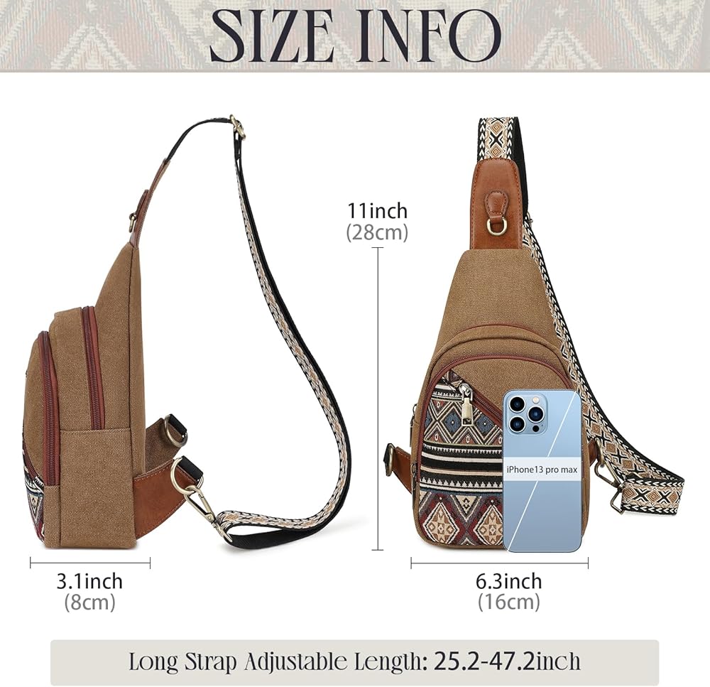 Multiple Ways to Wear: Size is (L) 6.3''* (W) 31''* (H) 11.0'' The bohemian sling backpack can be used as a crossbody bag, shoulder bag and wallet, it is lightweight, durable and easy to carry. This women's crossbody bag comes with an adjustable shoulder strap to adjust it according to your needs