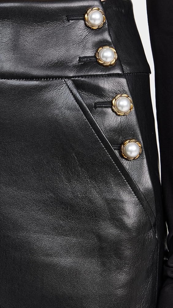 alice + olivia Women's Donald Vegan Leather Side Button Skirt