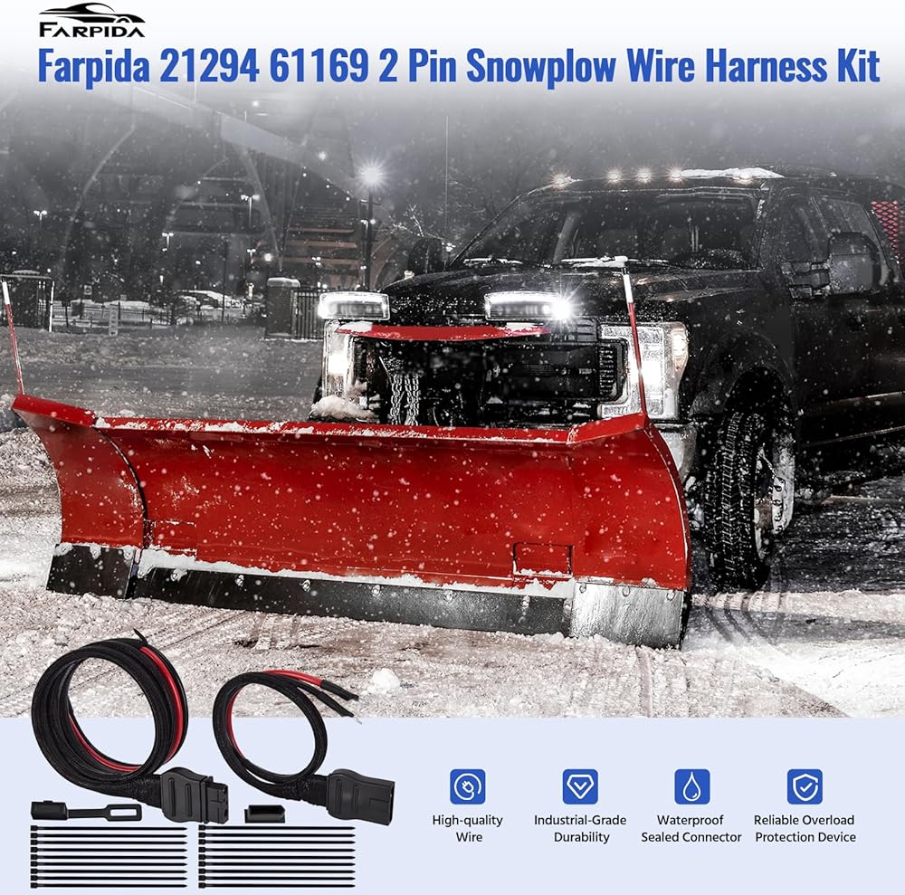 【Compatible Vehicle 】2 Pin Plow Side Battery Cable 21294 8245 & 2 Pin Truck Side Battery Cable Wiring Harness 61169 8274 fit for Western Fisher Snow Plows.