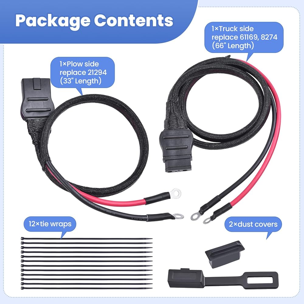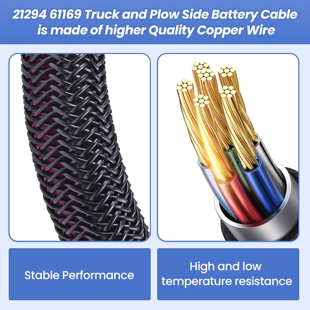 【Higher Quality】2 Pin Plow Side Battery Cable 21294 8245 & 2 Pin Truck Side Battery Cable Wiring Harness 61169 8274 is made of insulating materials, high strand count copper cores, ultra-low impedance, high efficiency and is rigorously tested to ensure reliability and durability.