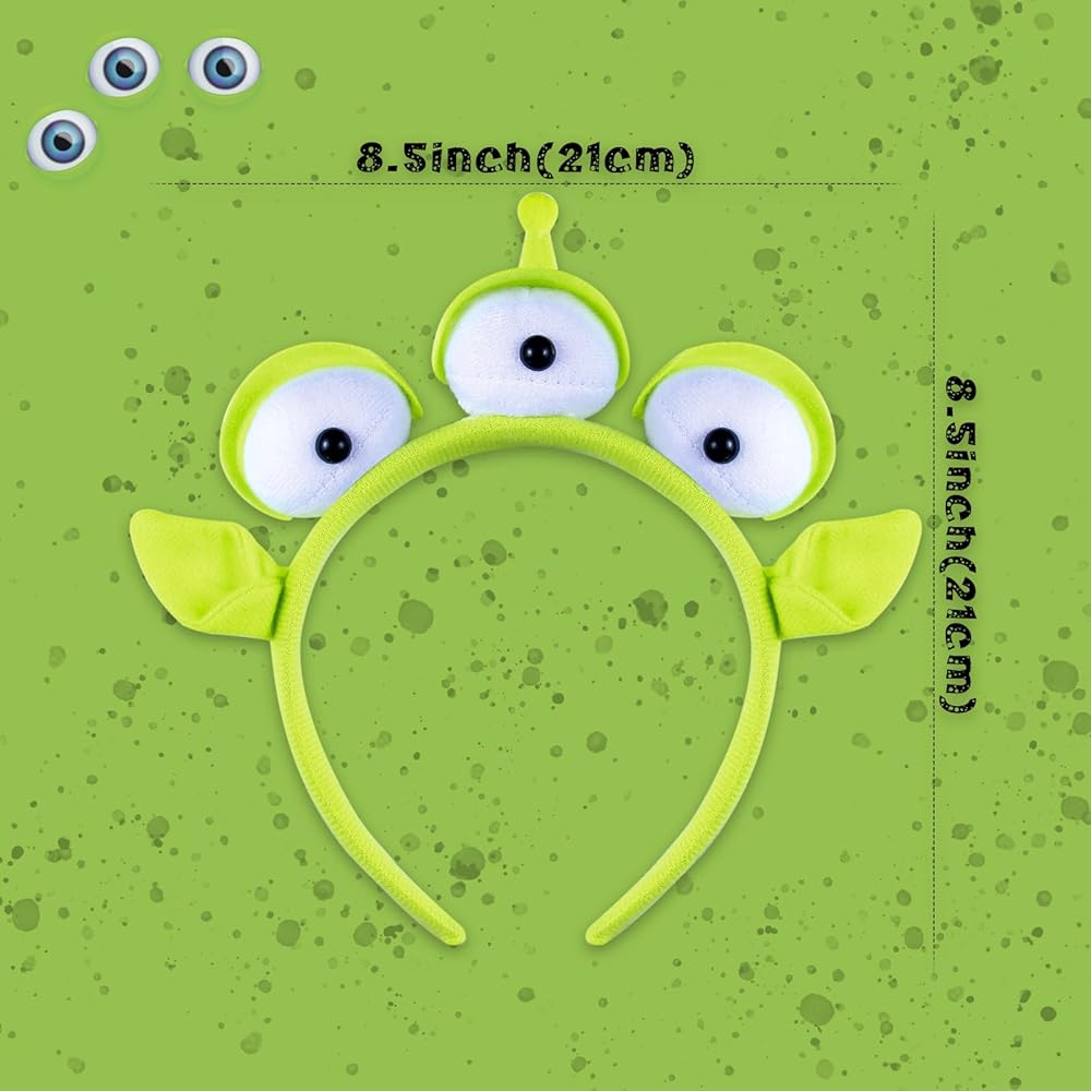 Green Alien Monster Design - Wow! Designed with the very popular movie character, green monster Alien headband with embroidered three eyes, It's sure to turn heads and make you stand out at Cosplay, Halloween, dress up, Birthday and theme parties.
