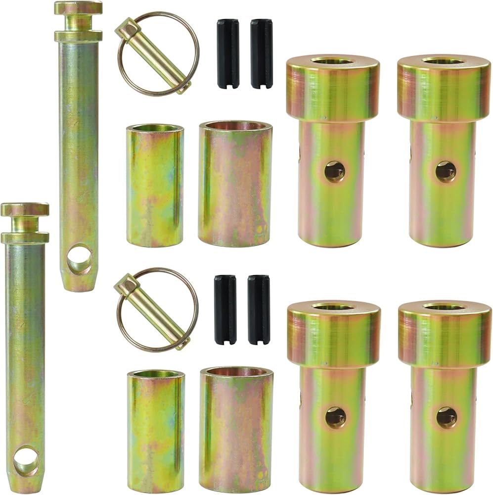 MATERIAL: Quick Hitch Adapter Bushing Kit is made of premium quality heavy-duty steel and yellow zinc dichromate plated, hardened to be extreme sturdy and durable, rust and corrosion resistance, these hitch parts can absolutely get your tractor and implement a secured connection