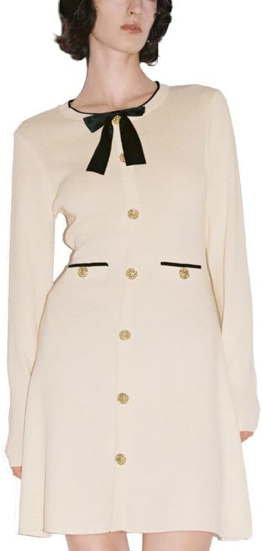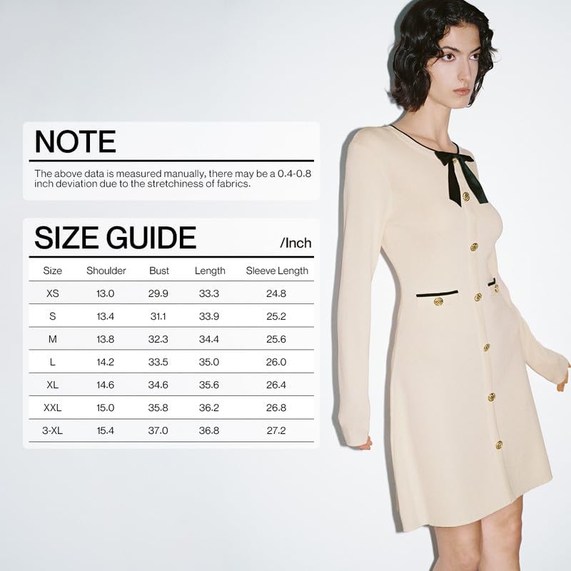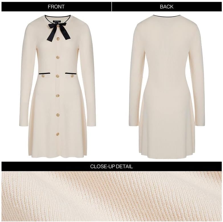 Unique Design: The detachable black bow at the neckline and the metal buttons add a special and trendy touch to the long-sleeved pullover sweater dresses. Knee length, A-Line, keep your look formal and elegant in spring and fall.
