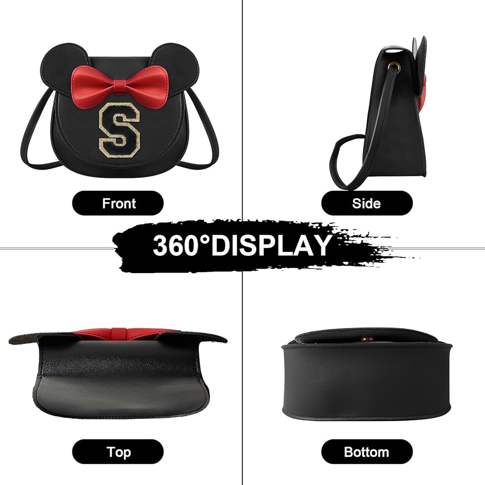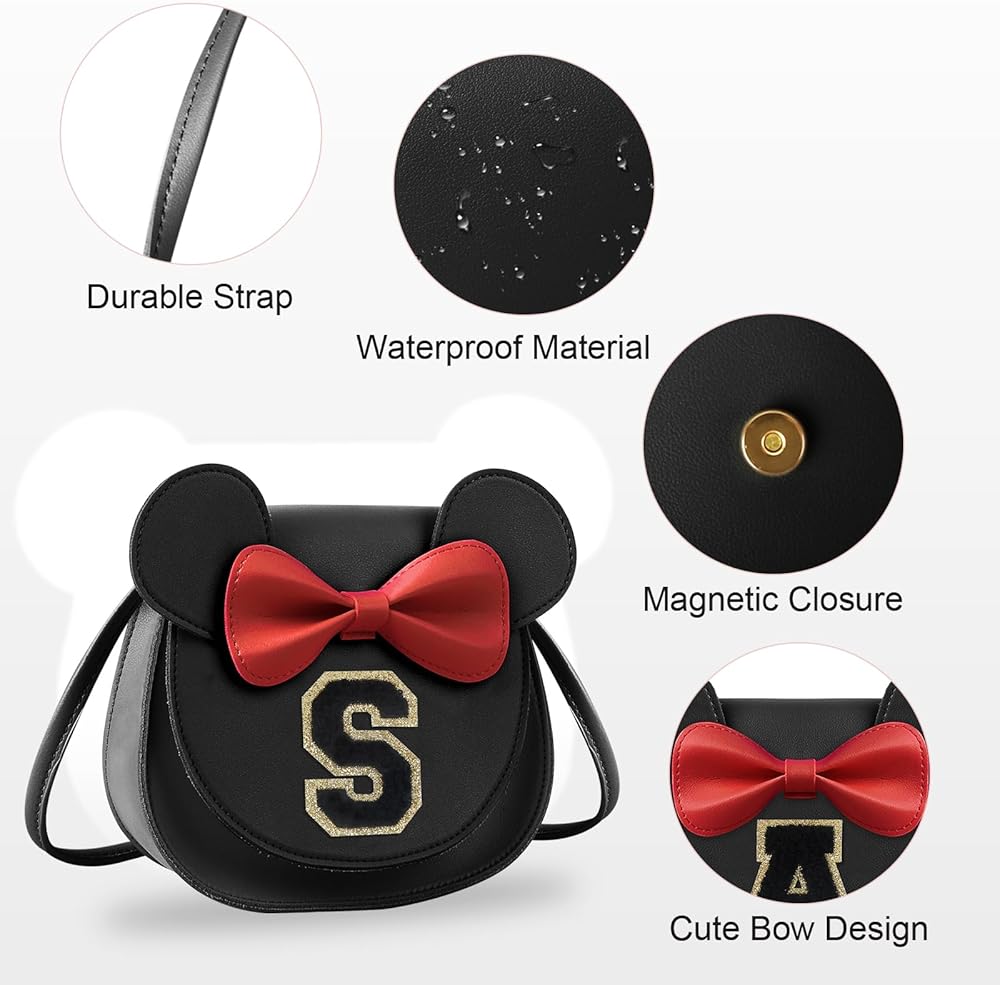 Toddler Purse Girl Gifts, Kids Purse Girl Little Mouse Ear Bow Wallet Crossbody Bag, Cute Personalized Initial Letter Bag Birthday Presents Gifts for 2 3 4 Year Old Girl