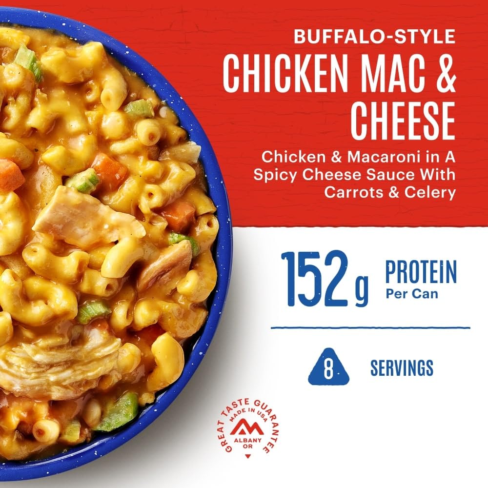 Mountain House Beef Stroganoff is hands down one of the most popular meals we make. Made with real pieces of tender beef and savory mushrooms and onions in a creamy sauce and no artificial or colors, one bite will make you a believer. Perfect for those times when the power goes out, or the kids bring the soccer team home for dinner, with Mountain House #10 cans, you can feed a group in minutes. Mountain House meals are freeze-dried to lock in nutrients and flavor. We take the water out, you add it back in. Mountain House #10 cans are backed by a 30-Year Taste making them a perfect addition to any emergency food supply.