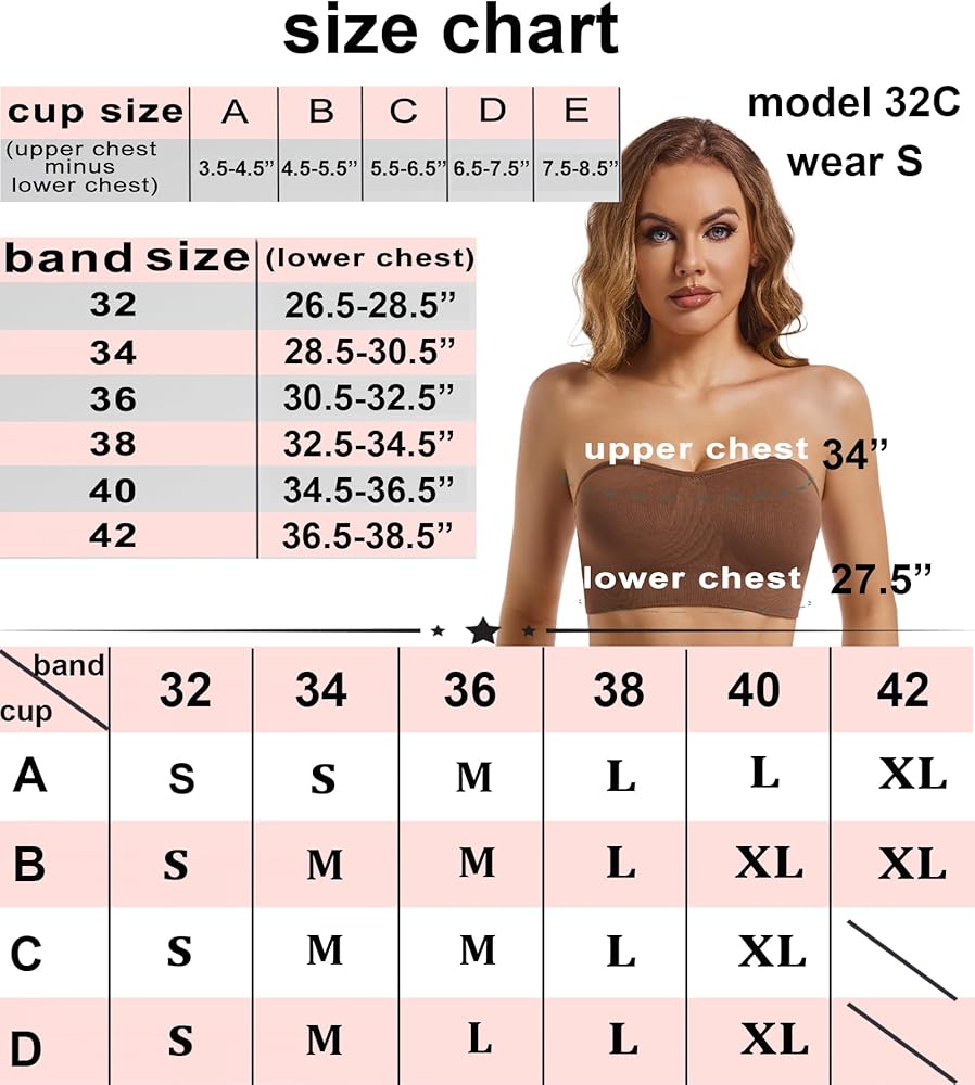 Comfort Strapless bra : our seamless bandeau bra is made with premium nylon and spandex material, the tube top bra feels ultra soft and comfort,breathable and keep you cool all day.The seamless tube bra is durable, help you create a beautiful chests.