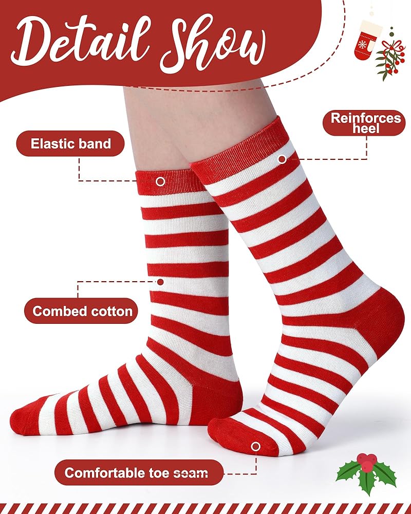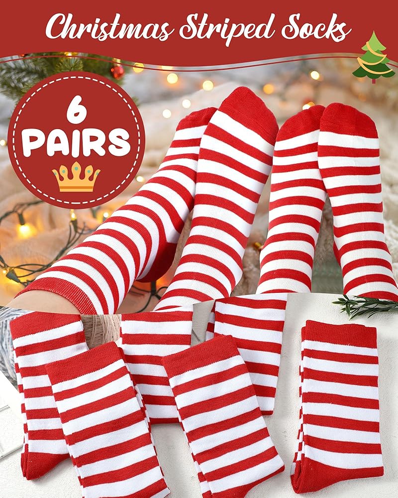 Ideal as gifts for holidays and parties, these striped Christmas socks also add a neatly fun twist to holiday celebrations. Part of a 6 pair set, they're not just socks. They're a bundle of joy!