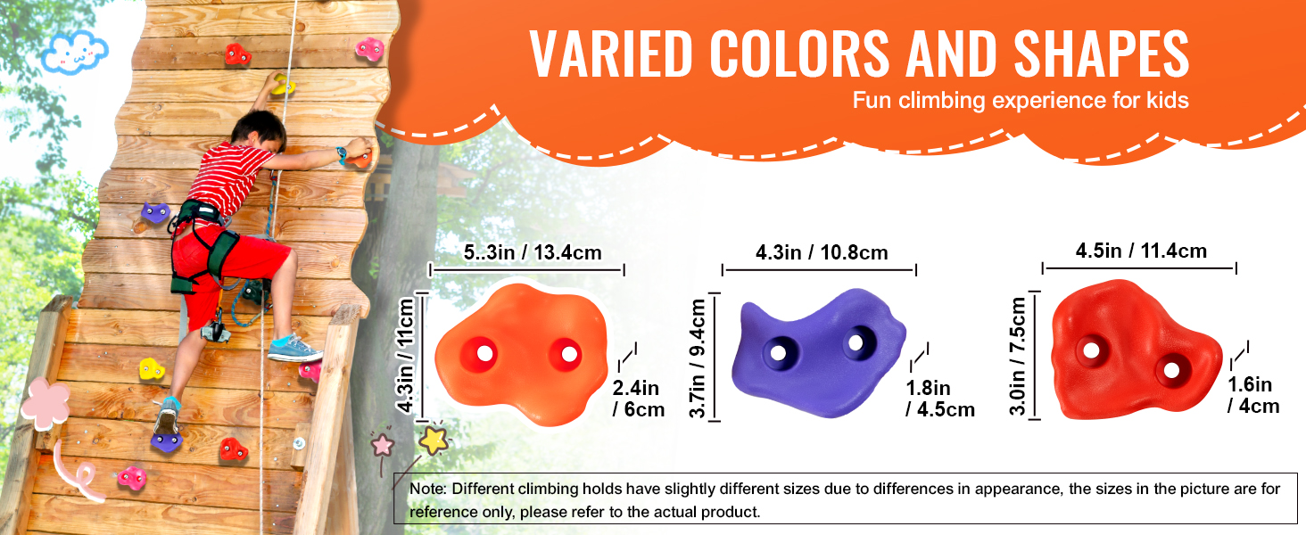 Bright Colors, Varied Shapes: No phone addiction, only happy climbers! The vibrant colors and varied shapes easily capture children's attention, shifting their focus from electronic devices to climbing! The rock wall climbing holds allow kids to build strength, coordination, and confidence while having endless fun during playtime.