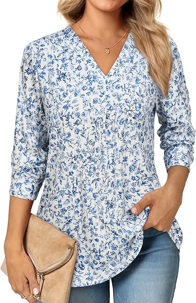 Good for All Year Around: Womens Blouses for Work Professional with a long sleeved design, is perfect for Spring Fall,Winter weather. Roll up the sleeves as 3/4 sleeve tunic tops for a relaxed look on warmer days or keep them down for a cozy, stylish appearance during the cooler months. long sleeve v neck shirt offers a flattering fit for all body types.It's a seamless transition from day to night.