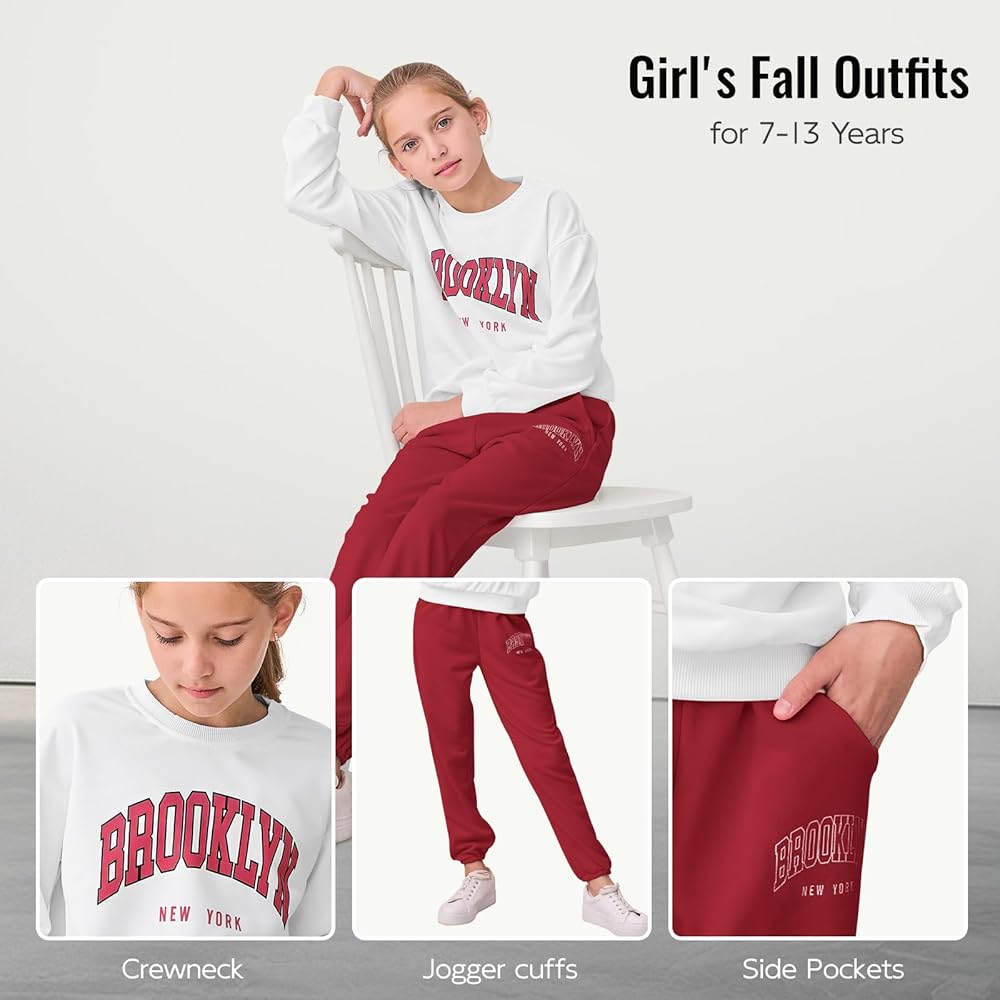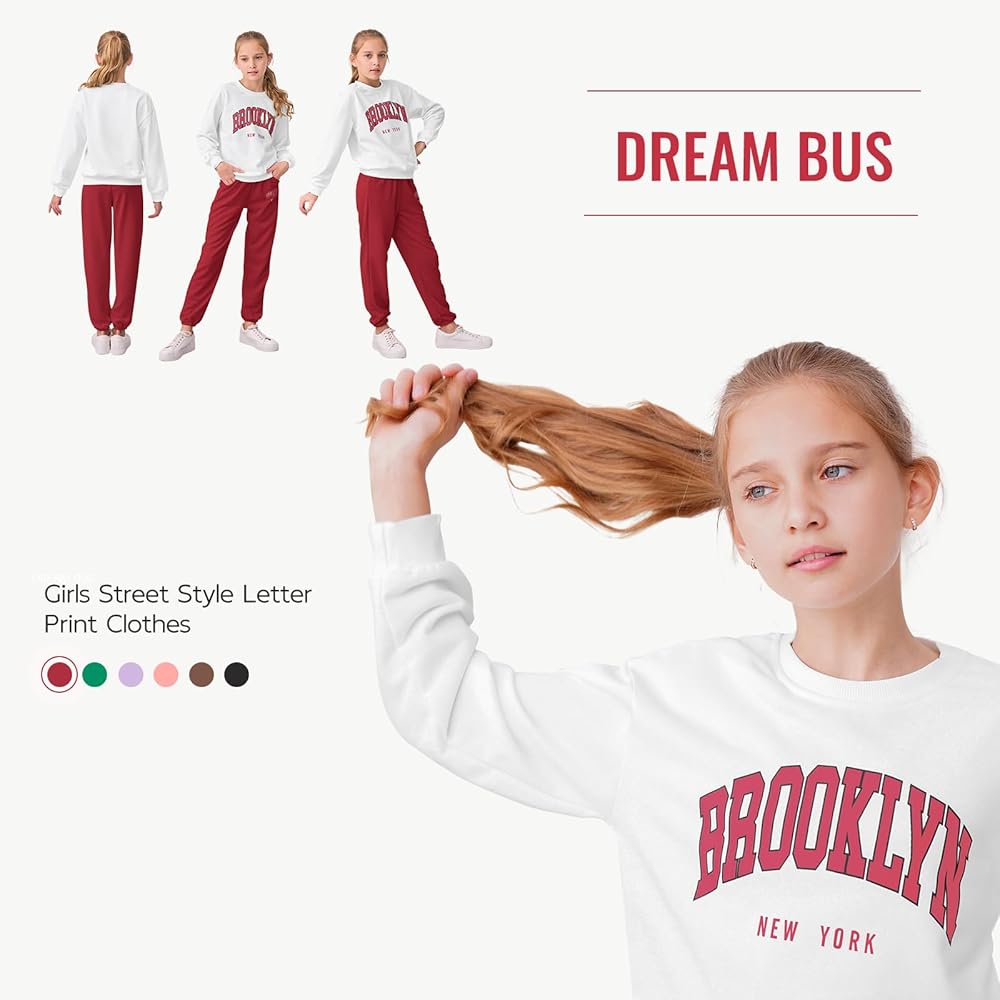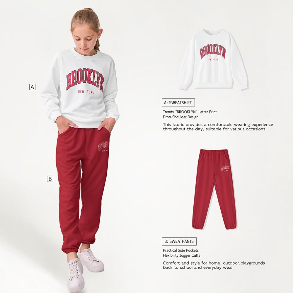Letter Print and Drop-Shoulder Design: The tween girl clothing of top features a trendy "BROOKLYN" letter print, combined with a relaxed drop-shoulder and long-sleeve design. This girls sweatsuit exudes a strong street style while maintaining a touch of playfulness, striking the perfect balance between your child's innocence and fashion sense.
