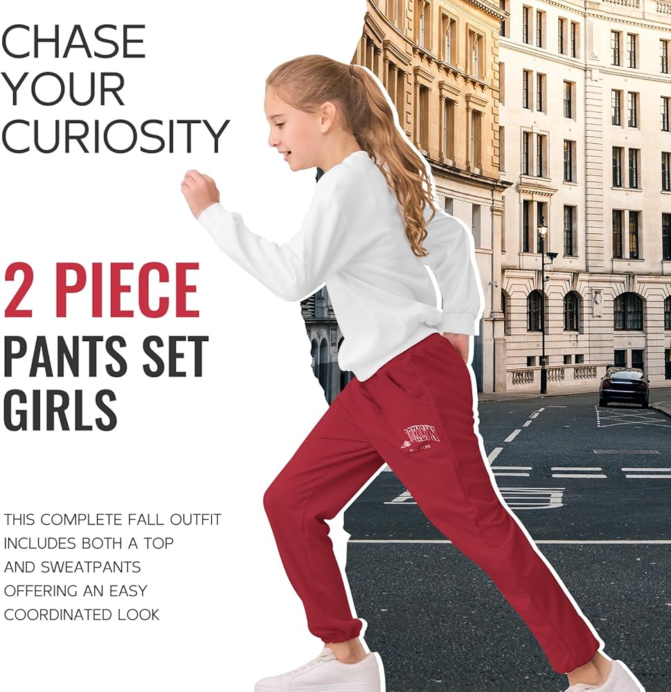 Loose and Comfortable Two-Piece Set: This complete fall outfit for girls includes both a top and sweatpants, offering an easy, coordinated look. The pants come with an elastic waistband and cuffed ankles, providing great freedom of movement, especially suitable for active girls.