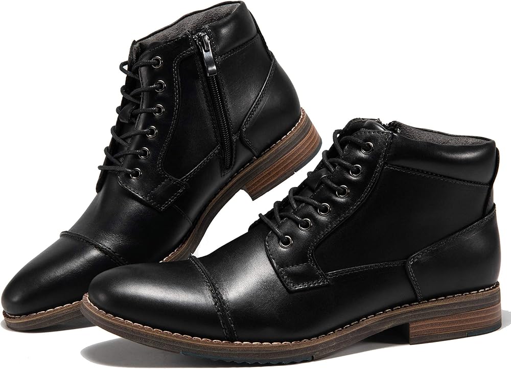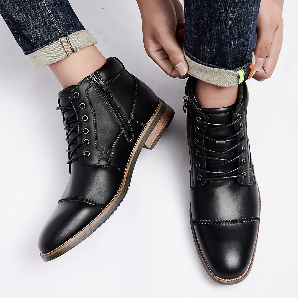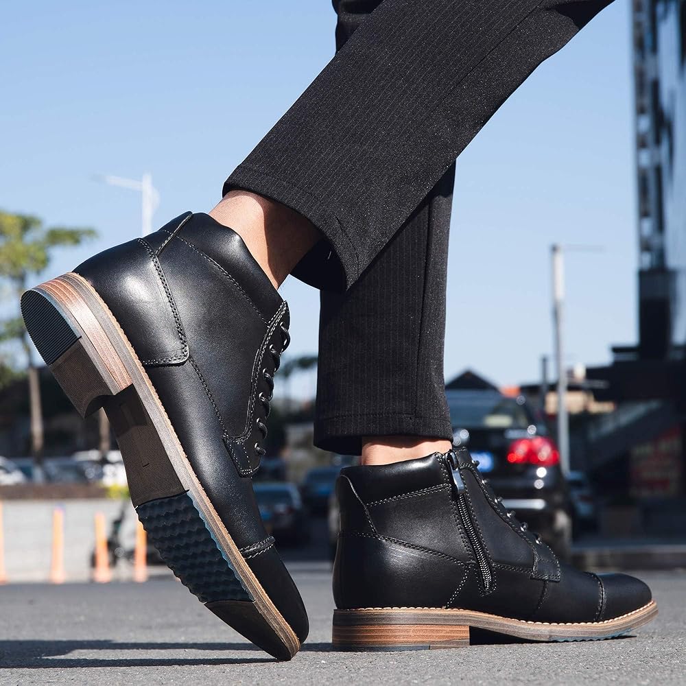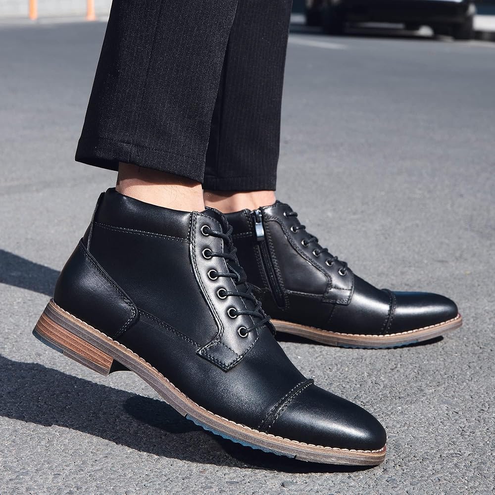 Arkbird Mens Dress Boots, Genuine Leather Classic Casual Ankel Boots with Side Zipper