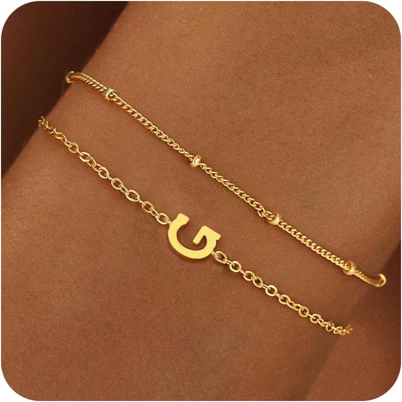 BAYLAY Gold Initial Bracelet for Women Trendy Jewelry - 18K Gold Plated Layered Letter Bracelet Dainty Gold Initial Charm Bracelet for Women Jewelry Gifts