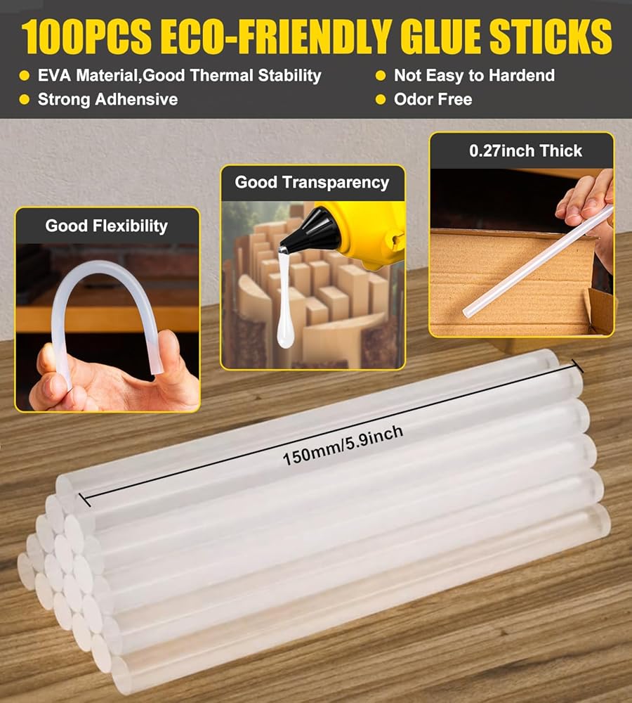 100 Glue Sticks Included : Comes with 100 pcs child-safety large size glue sticks - 0.27" diameter x 6" length, which is compatible with most glue guns on the market