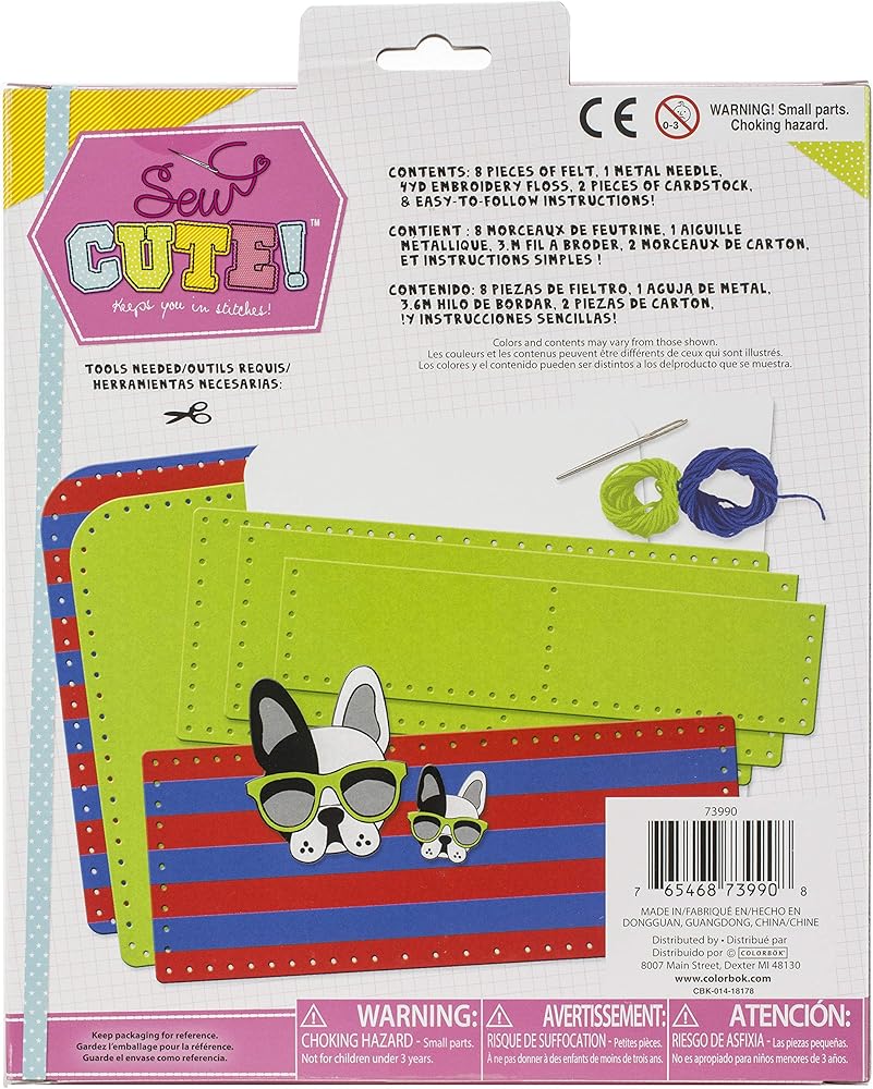 Spruce up your style with this Sew Cute Doggie Wallet Kit! This level 2 stitchery kit is a great way for kids to learn dexterity, creativity, patience, and the ability to follow instructions. Kit includes 8 die-cut felt pieces, 4 yards of embroidery floss, 1 sewing needle 2 cardstock sheets, and easy-to-follow instructions! Makes 1 wallet and 1 matching sunglasses holder. Give the kit or the finished project as a gift! Perfect for ages 8 and up.
