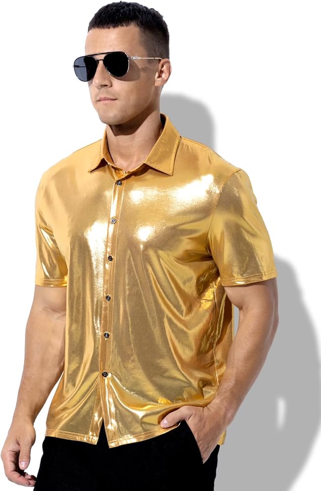 Comfortable and Breathable: Made with high-quality fabrics, this short sleeve shirt provides excellent comfort, allowing you to move freely and dance all night. The breathable material ensures that you stay cool even in the hottest disco or club settings.