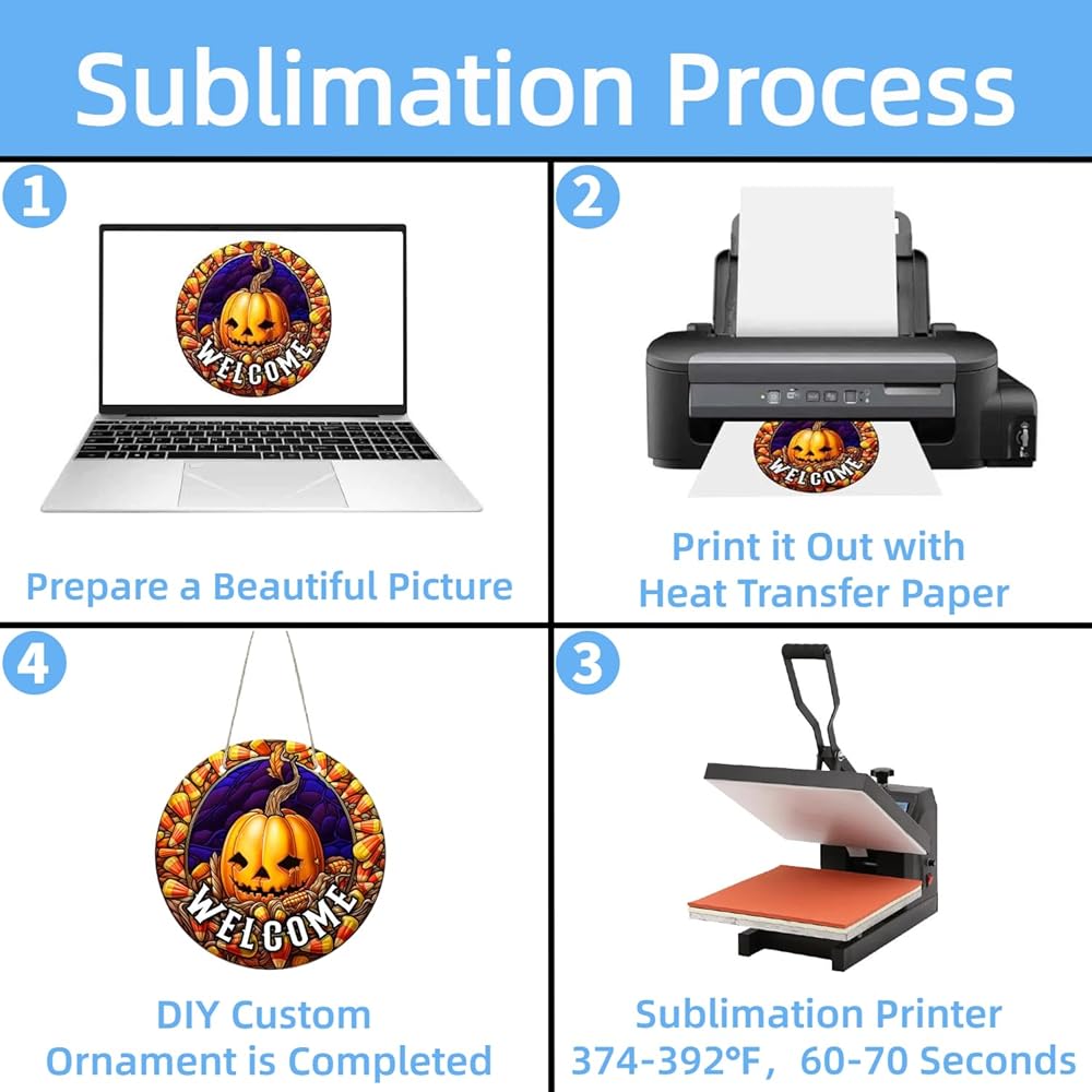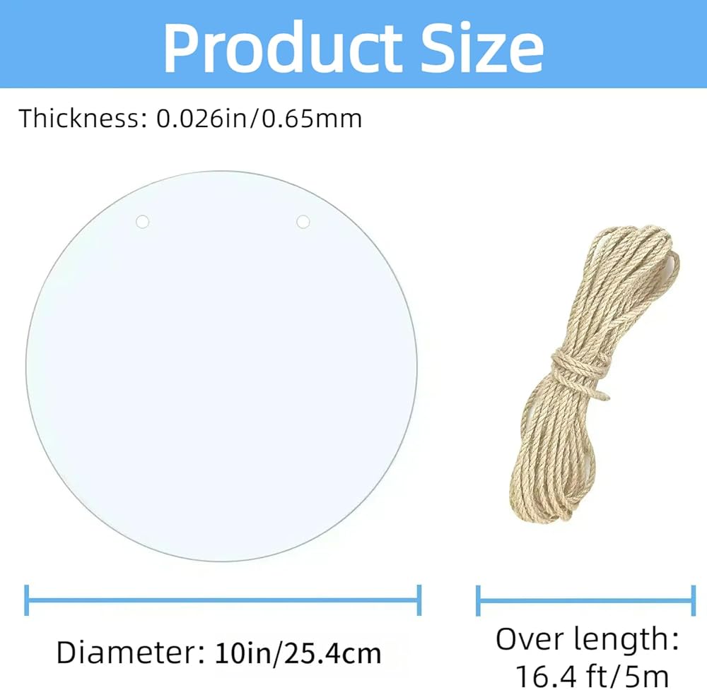 【 Package Contents 】10 pcs Round Metal Sublimation Ornament blank, Ornament 12 inches/30 cm in diameter, 0.026 inches/0.65mm thick, 1 hanging ropes (16.4ft/5m ). You can cut it to the size you want