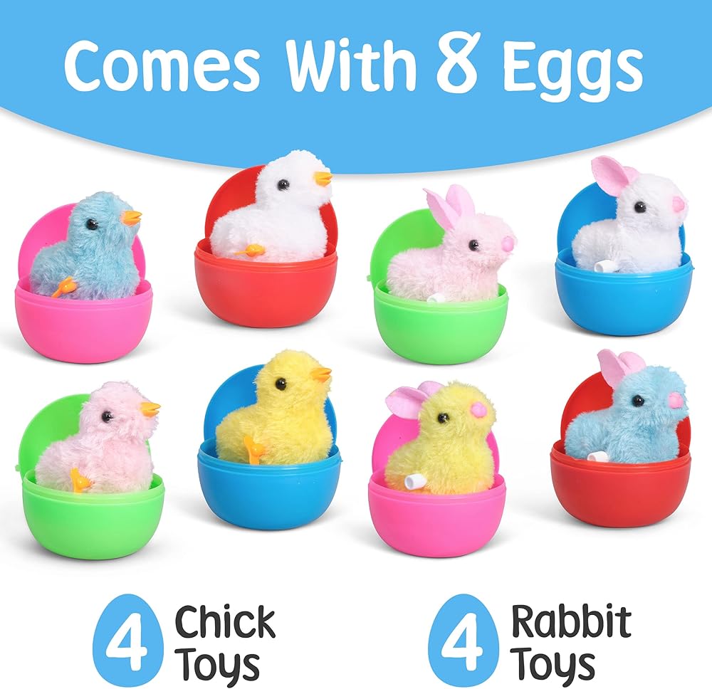 WHAT YOU GET - This set includes eight (8) 4" wind-up toys: 4 chick toys and 4 rabbit toys. Choose Prextex Easter eggs for hours of Easter egg hunting fun!