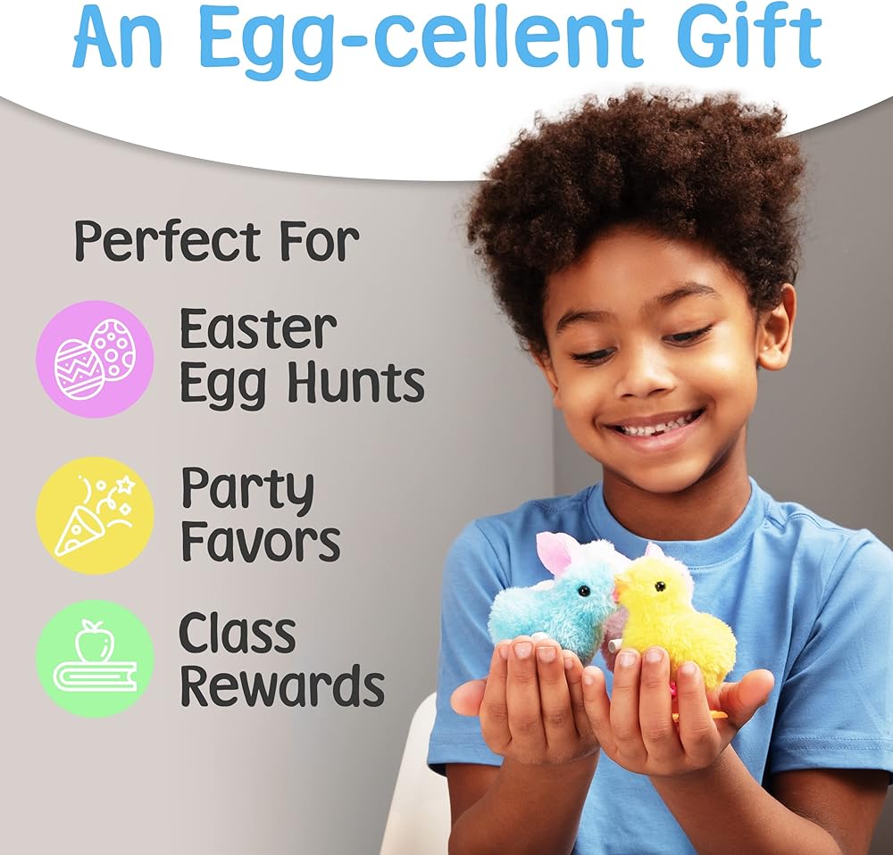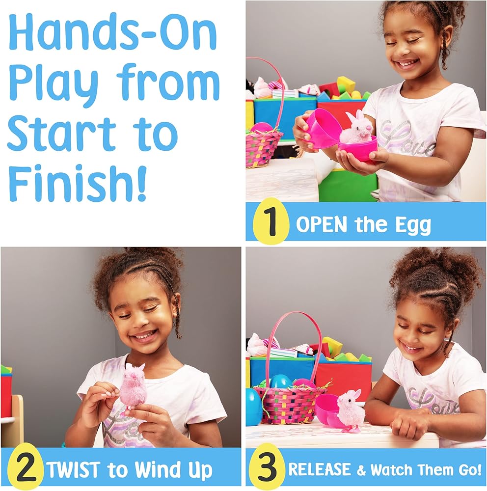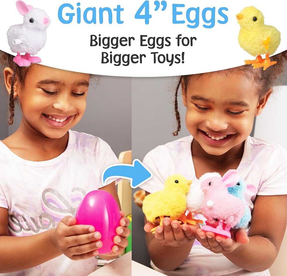 EXCITEMENT AWAITS - Watch as children's faces light up with delight when they discover the surprises hidden within each Easter egg they hunt. From colorful wind up chicks to adorable rabbits, these eggs promise endless joy, excitement, and enchantment to your Easter celebrations.