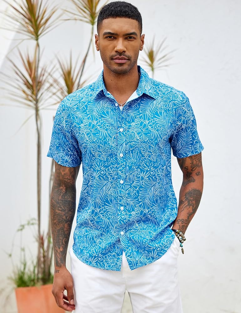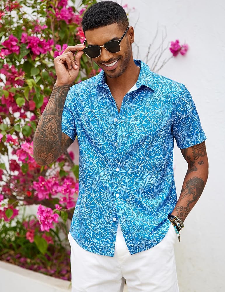 【Stylish Design】This tropical shirts for men designed with loose fit, button up closure, short sleeve, turn down collar and back curved hem. It's the best gift for birthdays, anniversaries, Valentine's Day, etc. And a great gift for your boyfriends, husband, sons, etc.