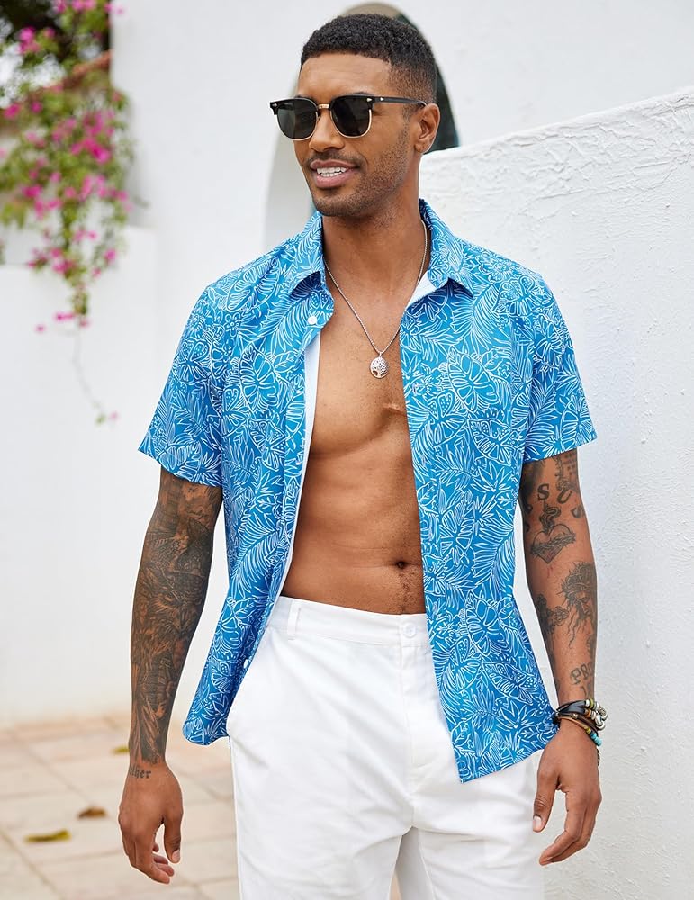 【Multiple Occasion】Men's casual button-down shirts is perfect for tropical Hawaiian theme, vacation, beach, traveling, camping, fishing, cruise, party, holidays, working, daily wear, etc.It's easily to match with casual shorts, slacks, jeans, etc. And you can also pair it with sunglasses, sun hat, slippers for a beach vacation.