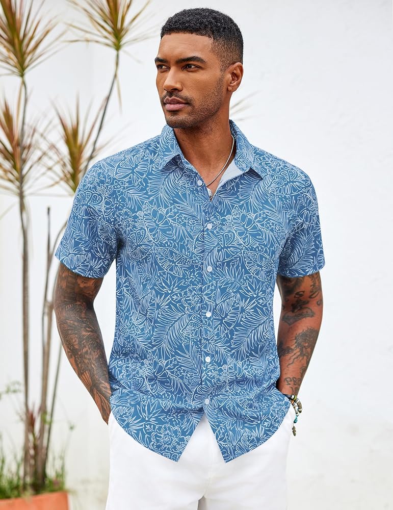 【Beach Printed Style】Mens button down short sleeve shirt has a variety of print pattern options, such as ethnic style, abstract pattern, multi-color printed leaves pattern. Each color is eye-catching and you'll look like a gentleman and handsome when wearing this mens beach shirts.
