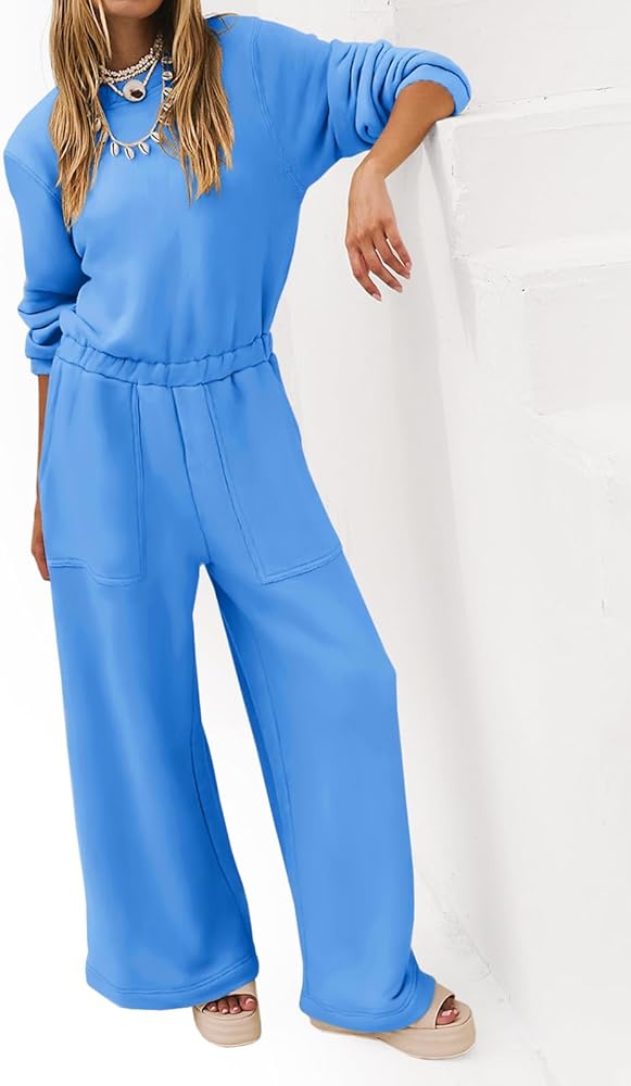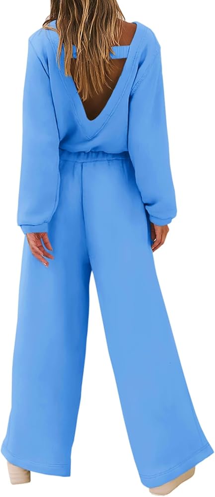 Yousify Women Trendy Rompers 2025 Wide Leg Long Sleeve Jumpsuits Casual Sweatshirt One Piece Backless Cutout Outfits