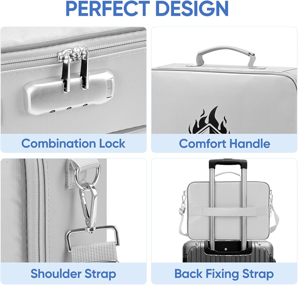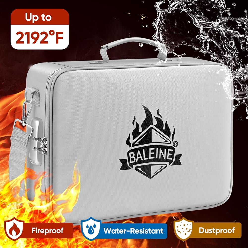 [مقاوم للماء ومقاوم للحريق] اجتاز اختبار مقاومة الحريق SGS UL94 VTM-0. تم تصنيع حقيبة المستندات المقاومة للحريق من BALEINE من مادة الألياف الزجاجية المطورة مع طبقة سيليكون مقاومة للغبار، مما يضمن مقاومة عالية لدرجات الحرارة القصوى التي تصل إلى 2192 درجة فهرنهايت (1200 درجة مئوية). كما أن السطح والسحابات مقاومة للماء لتوفير حماية موثوقة ضد الماء والرطوبة.