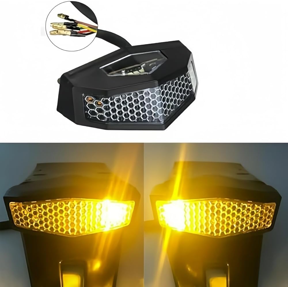 -Brake light is consists of 12 LED luminotron ( red light ) / License Plate light is consists of 3 LED ( white light ).NO PLUG&PLAY,You need to manually install it with Five 30mm cables. -Connect:5 Wires (Black:Negative;Green:Positive; Red:Positive、Brake Light;Yellow:Right Turn Signal;Brown: Left Turn Signal)
