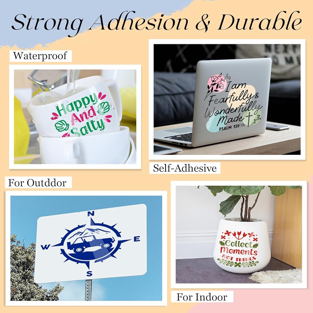 📑【Multi-application】Enjoy permanent adhesive vinyl rolls that are compatible with vinyl machines, which can be used for Home Decor, Scrapbooking, Lettering, Graphics, Stickers, Decals, Mirrors, Laptop, Windows, Banners, Sign and any other smooth flat surface, and So Much More!