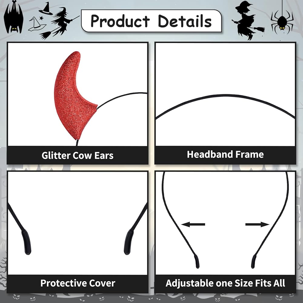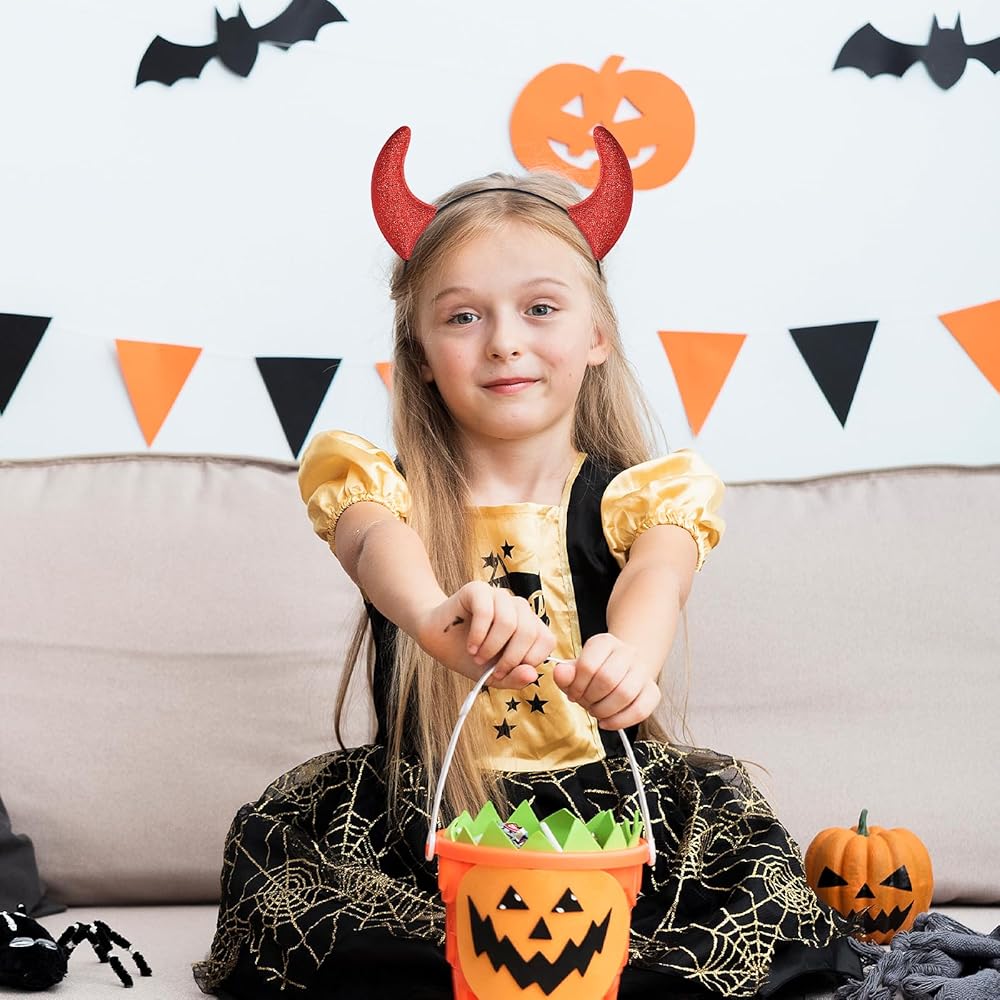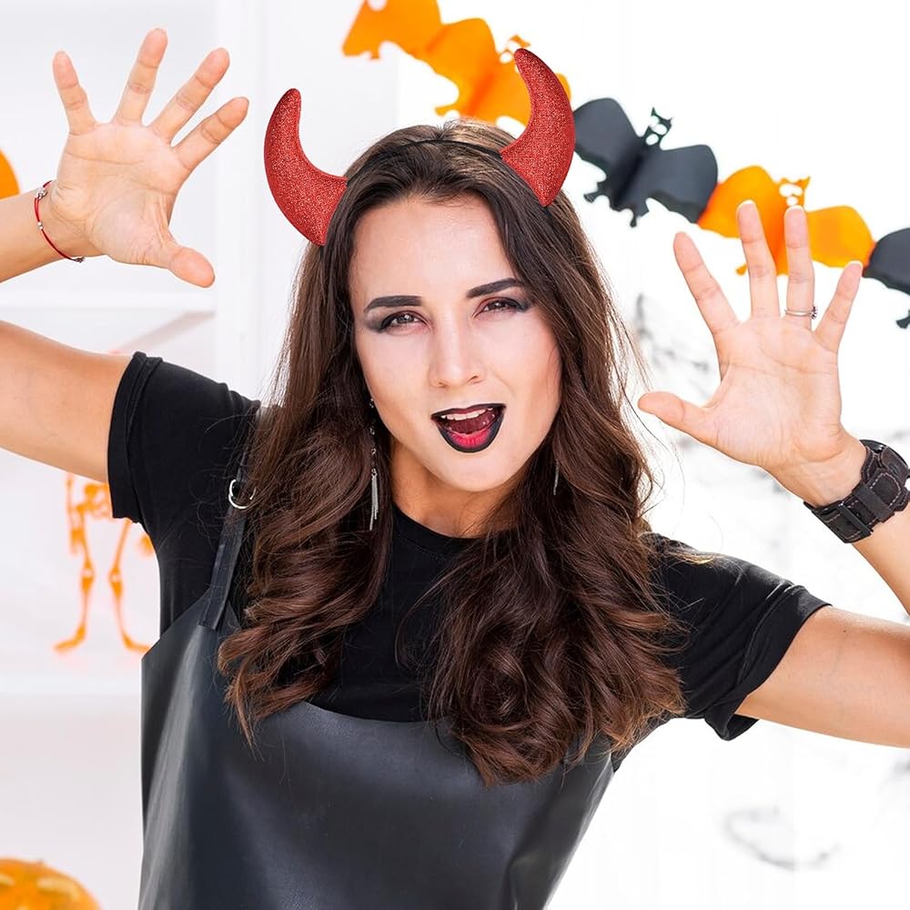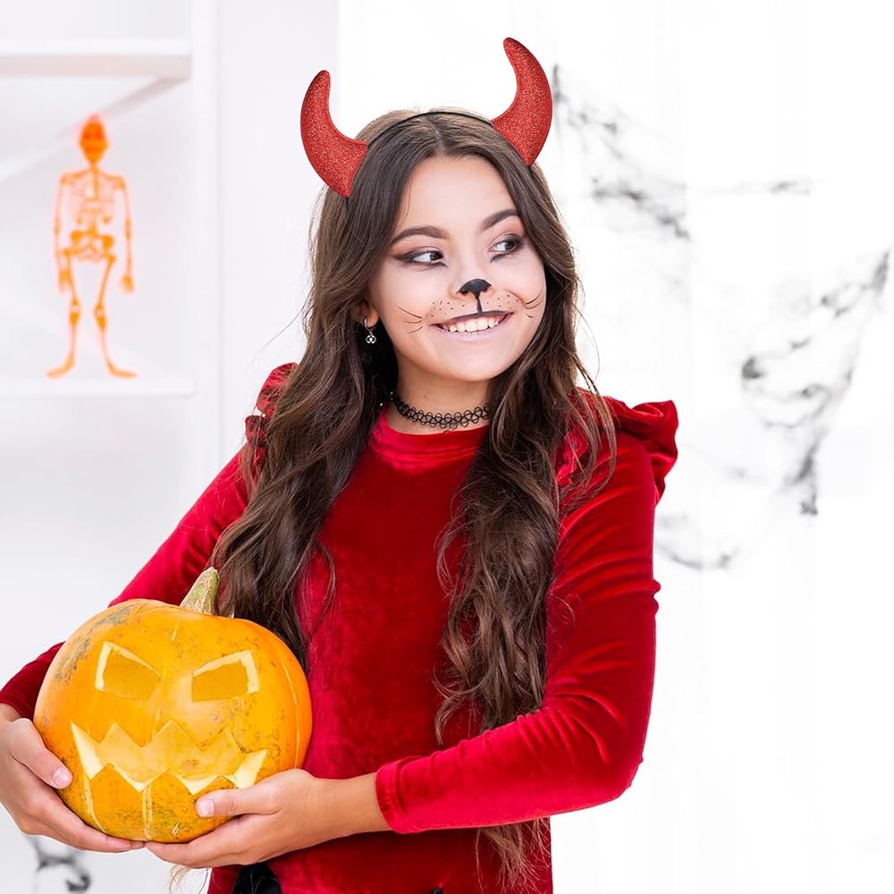 Eye-Catching Design - The headband features bold red glitter horns that are perfect for creating a striking and festive look. This playful design adds a unique and fun touch to any costume or party outfit.