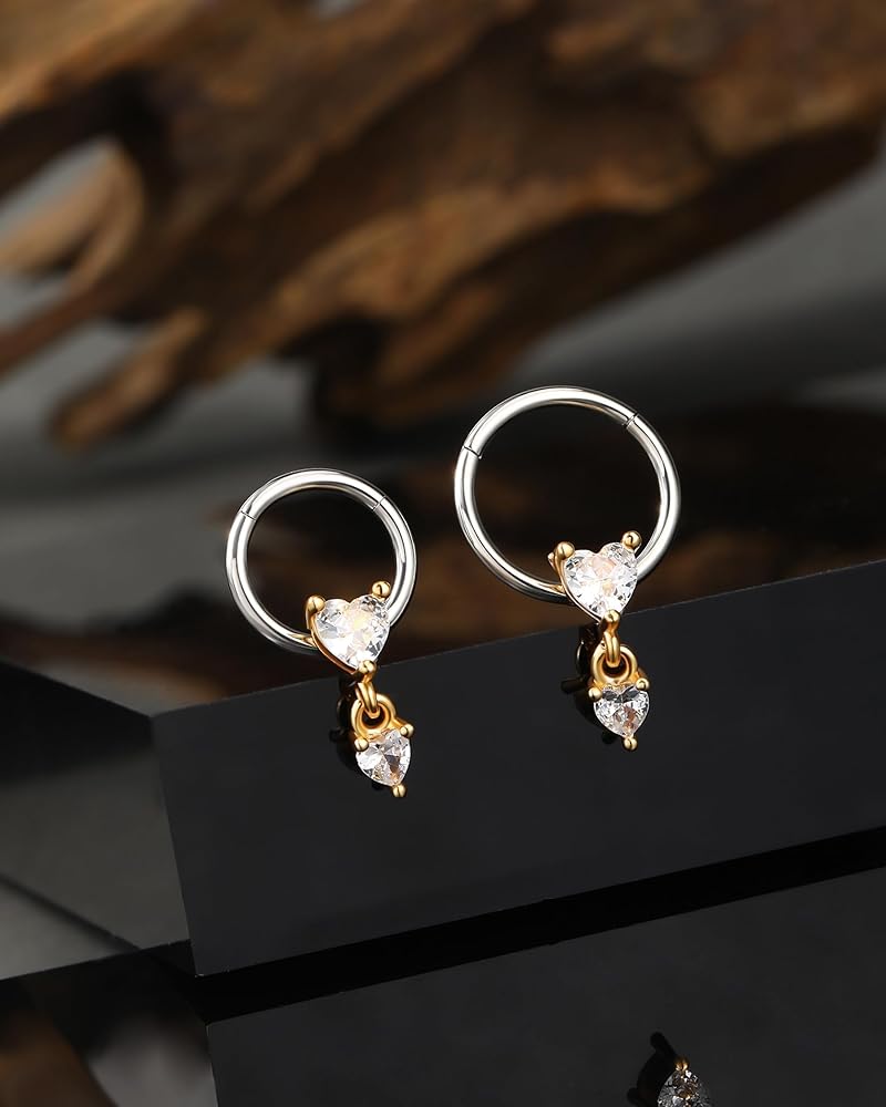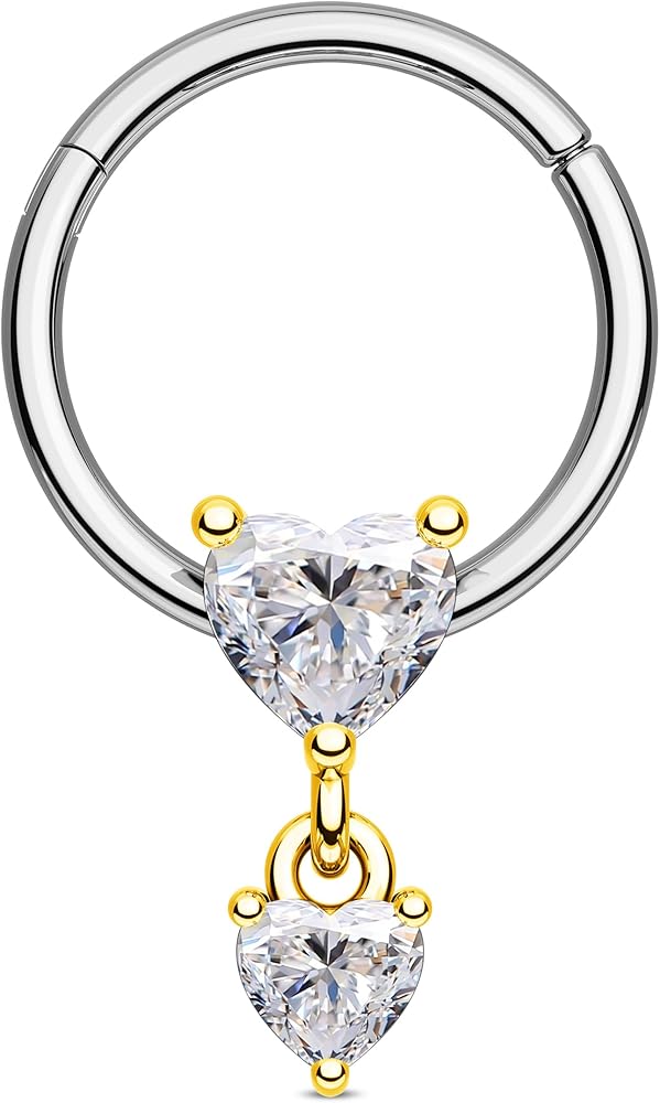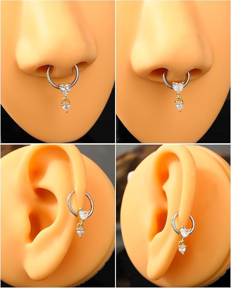 Style: One piece heart design septum ring,we have two colors for you to choose:steel and gold.This shinning and beautiful septum jewelry suitable for different makeup and clothing.